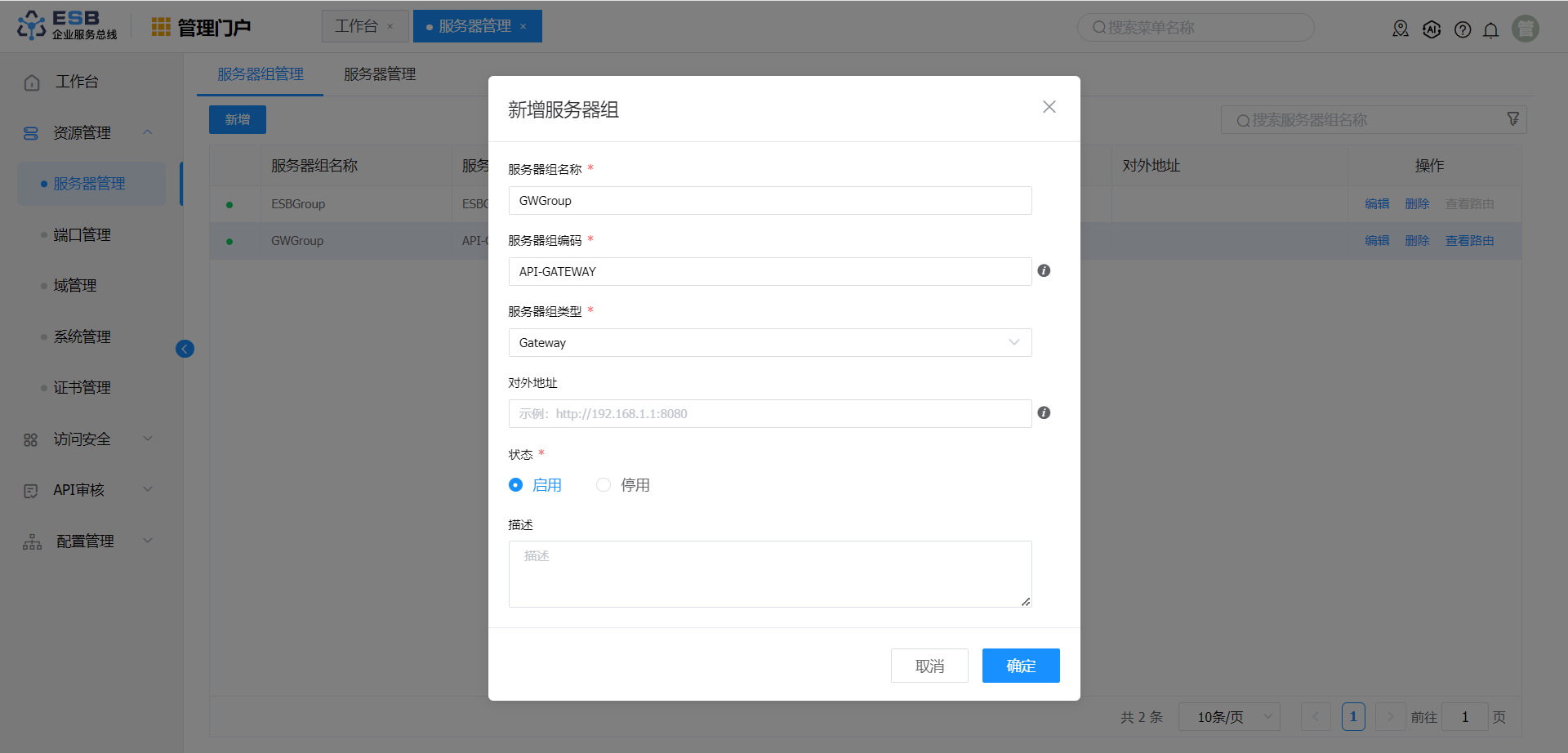 创建服务器前,需要先确认ESBServer或APIgateway已经启动成功,否则无法创建服务器。