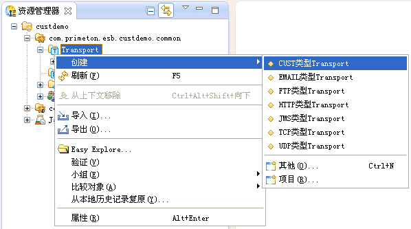 com.primeton.esb.adapter.framework.component.AbstractTransportComponent用于Transport扩展,定制的Transport需直接或间接地继承此类,并重写其中的几个抽象方法。