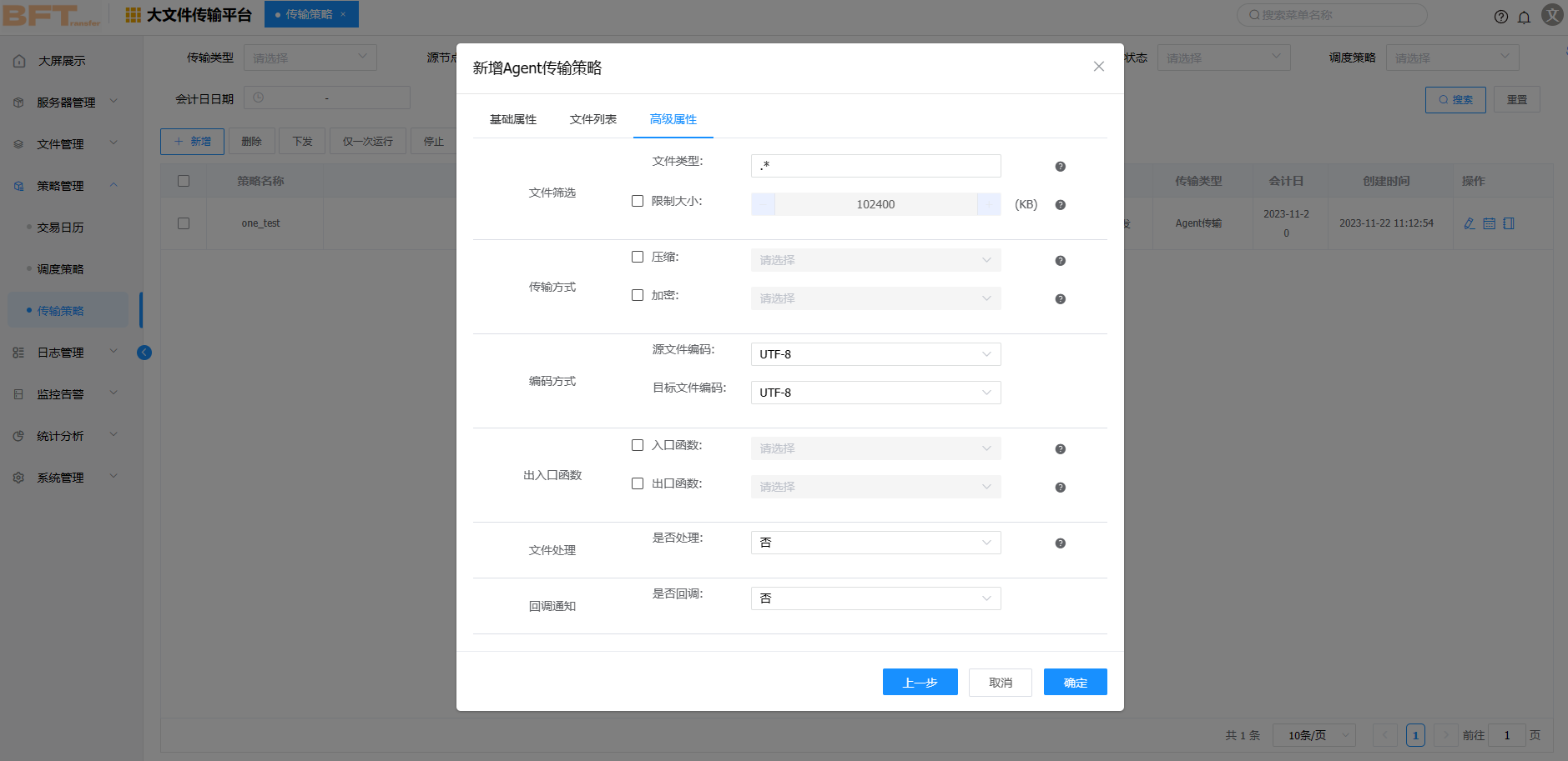 | 限制大小 | 筛选小于该配置的文件进行传输 |