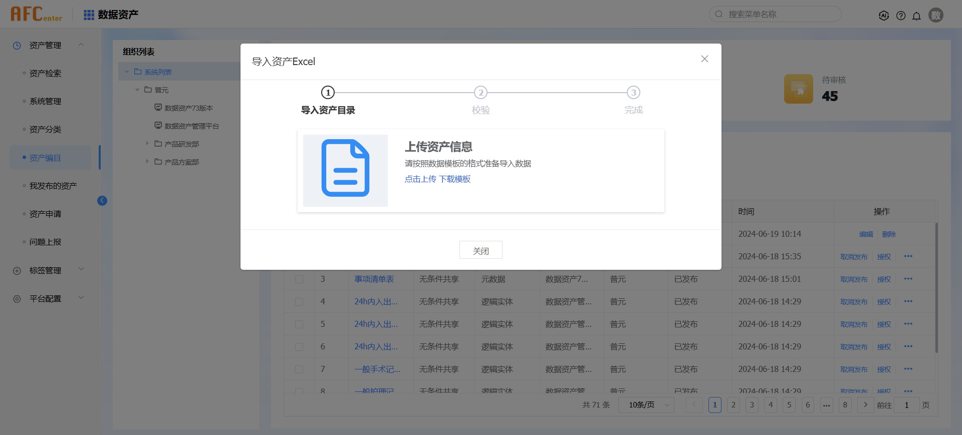 - 在资产分类中维护资产目录分类信息,在资产编目时可以选择,也可以在资产分类中批量关联。(非必需)