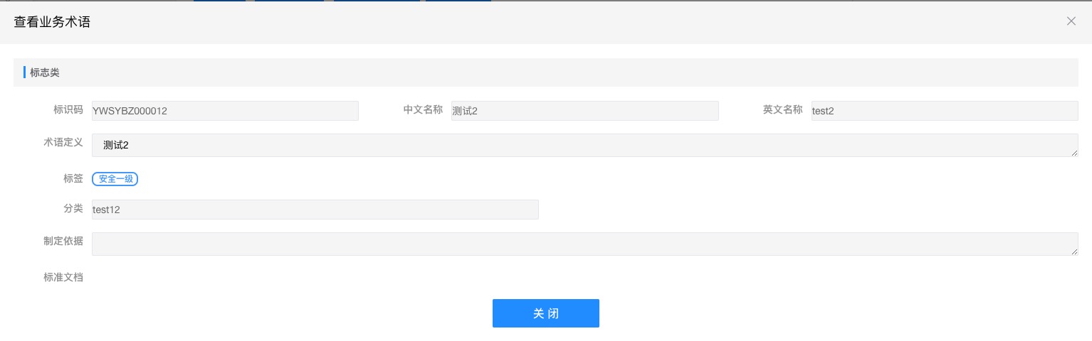 在业务术语列表页面,点击业务术语的中文名称,即可打开业务术语的详情页面,对业务术语进行查看。
