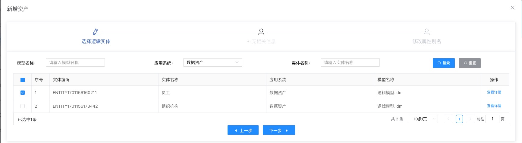 点击“资产编目”按钮弹出编制对象选择框,选择“基于逻辑实体编制”。