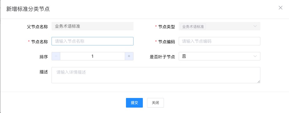 在标准管理中“业务术语标准管理”、“数据元标准管理”、“指标标准管理”、“代码标准管理”中添加相关数据。