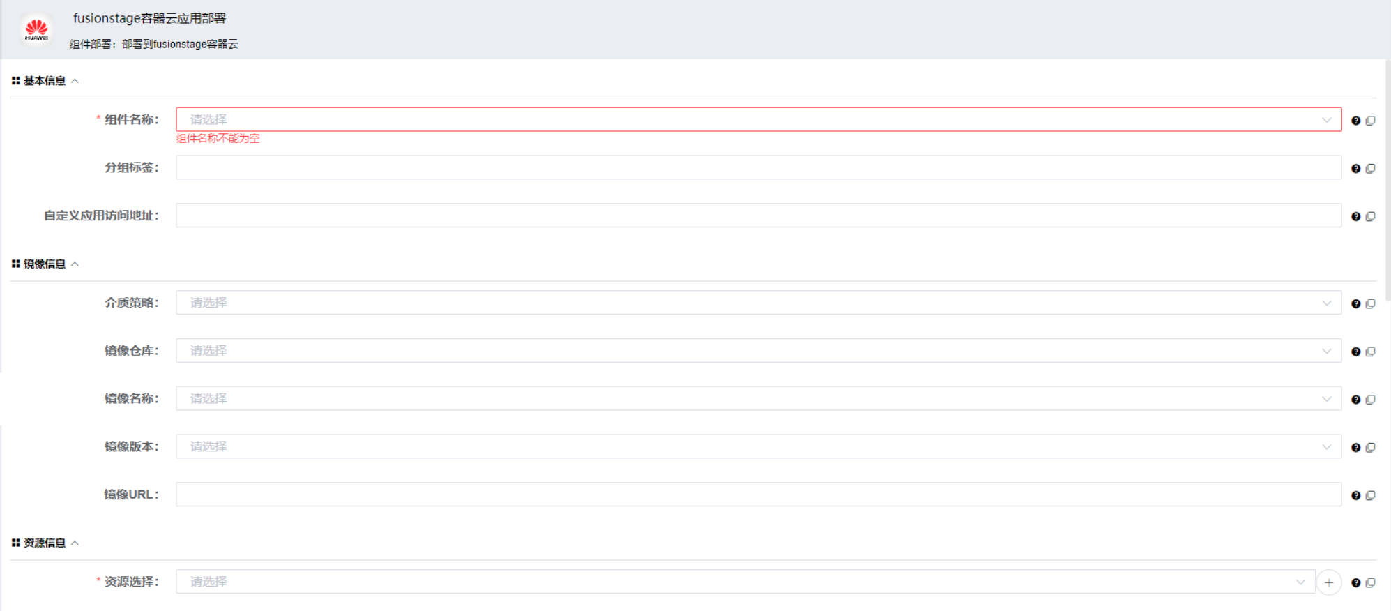 | 资源选择 | 从资源列表中选择需要部署到哪个/哪些资源上 |