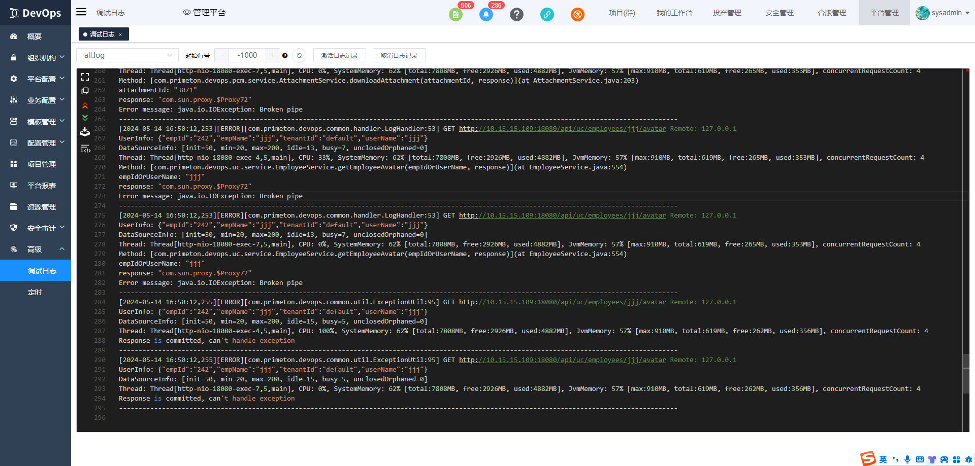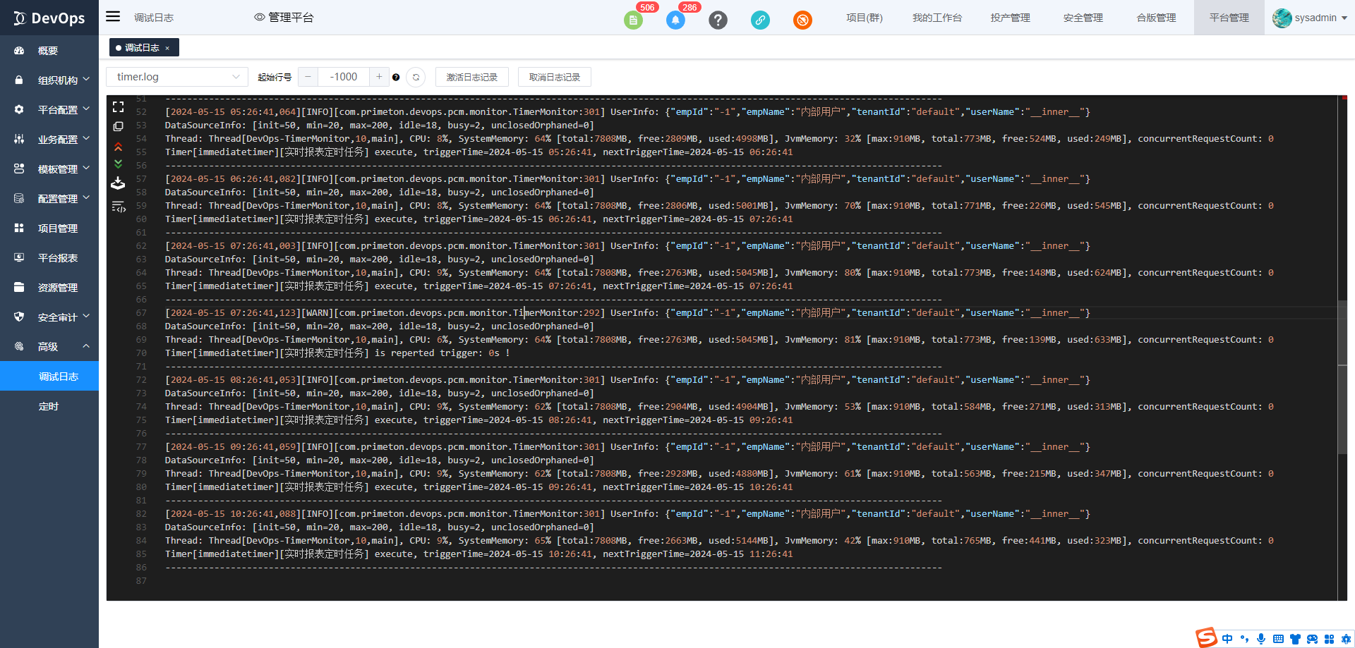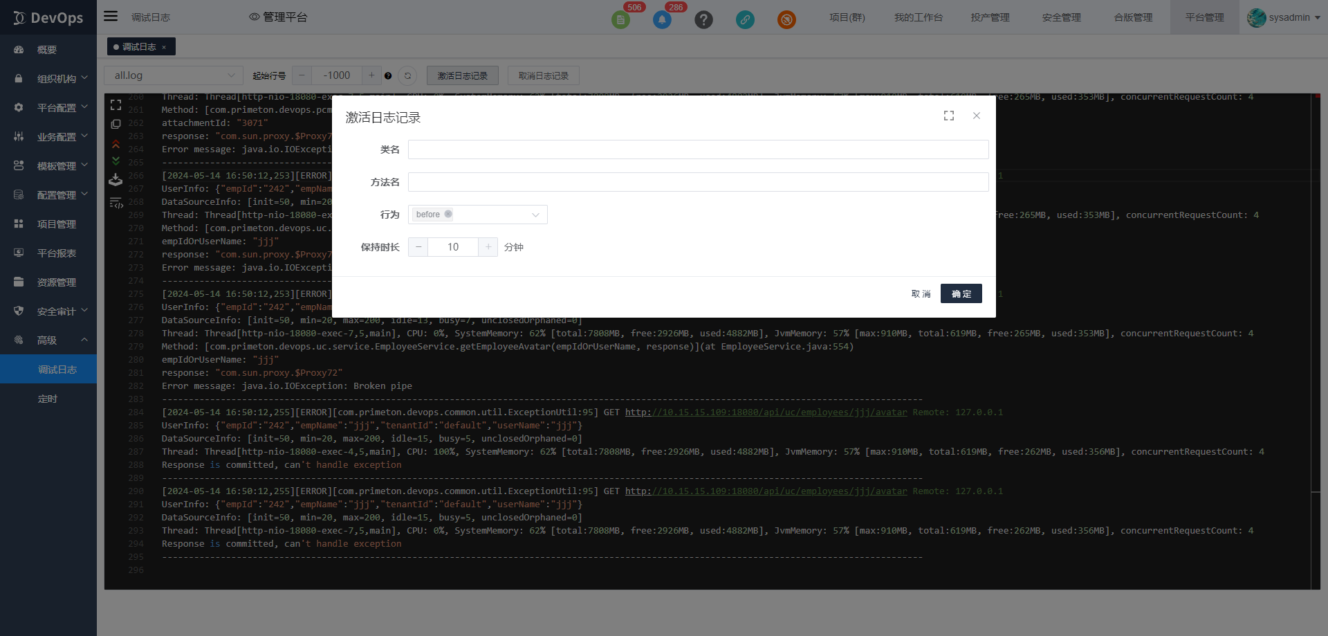 通过平台配置-平台信息-平台参数-Pcm.EnableDebugMode配置为true开启DevOps平台调试模式。