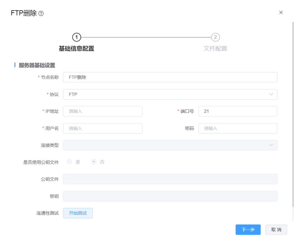 功能介绍:FTP删除用于从指定 FTP 服务器上删除文件
