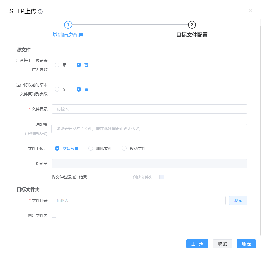| 创建目标文件夹:勾选此选项,服务器目录不存在时,创建目录 | |