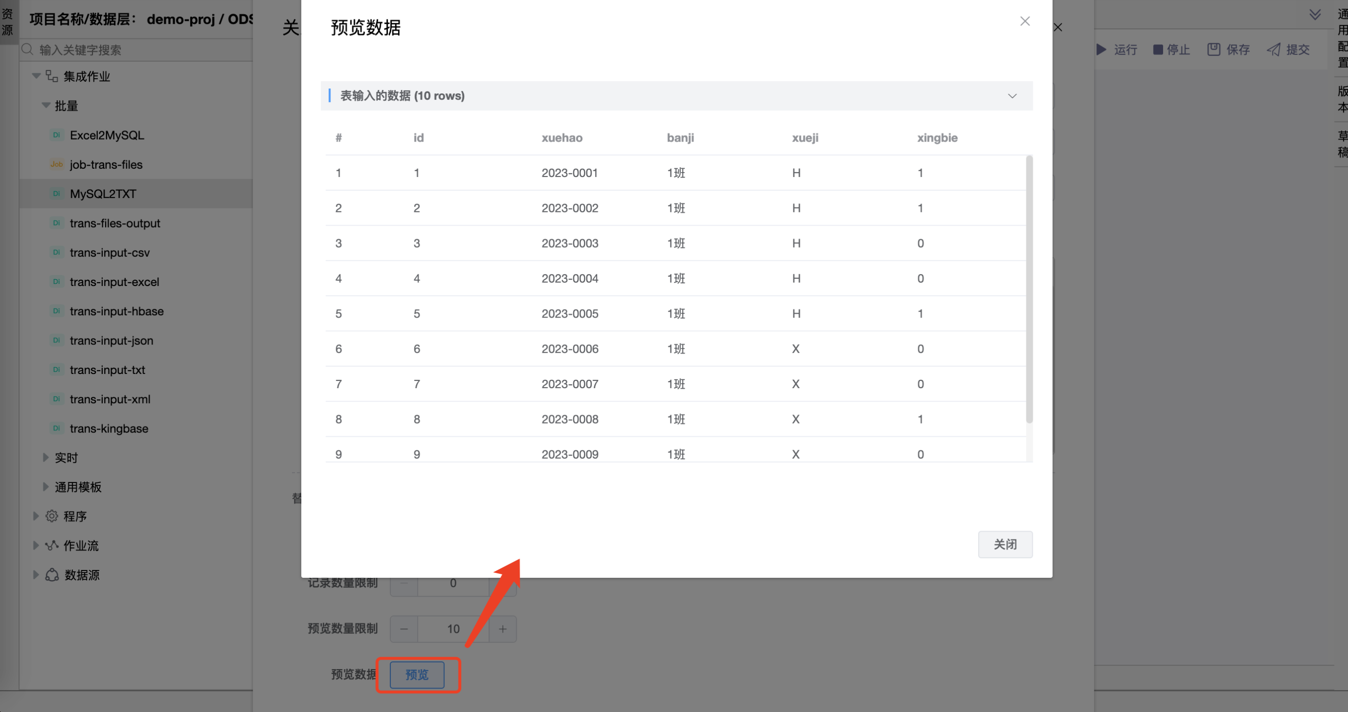 点击【预览】按钮,可以在线查看对应SQL语句查询的数据列表。如果不想预览数据可以不用点击。
