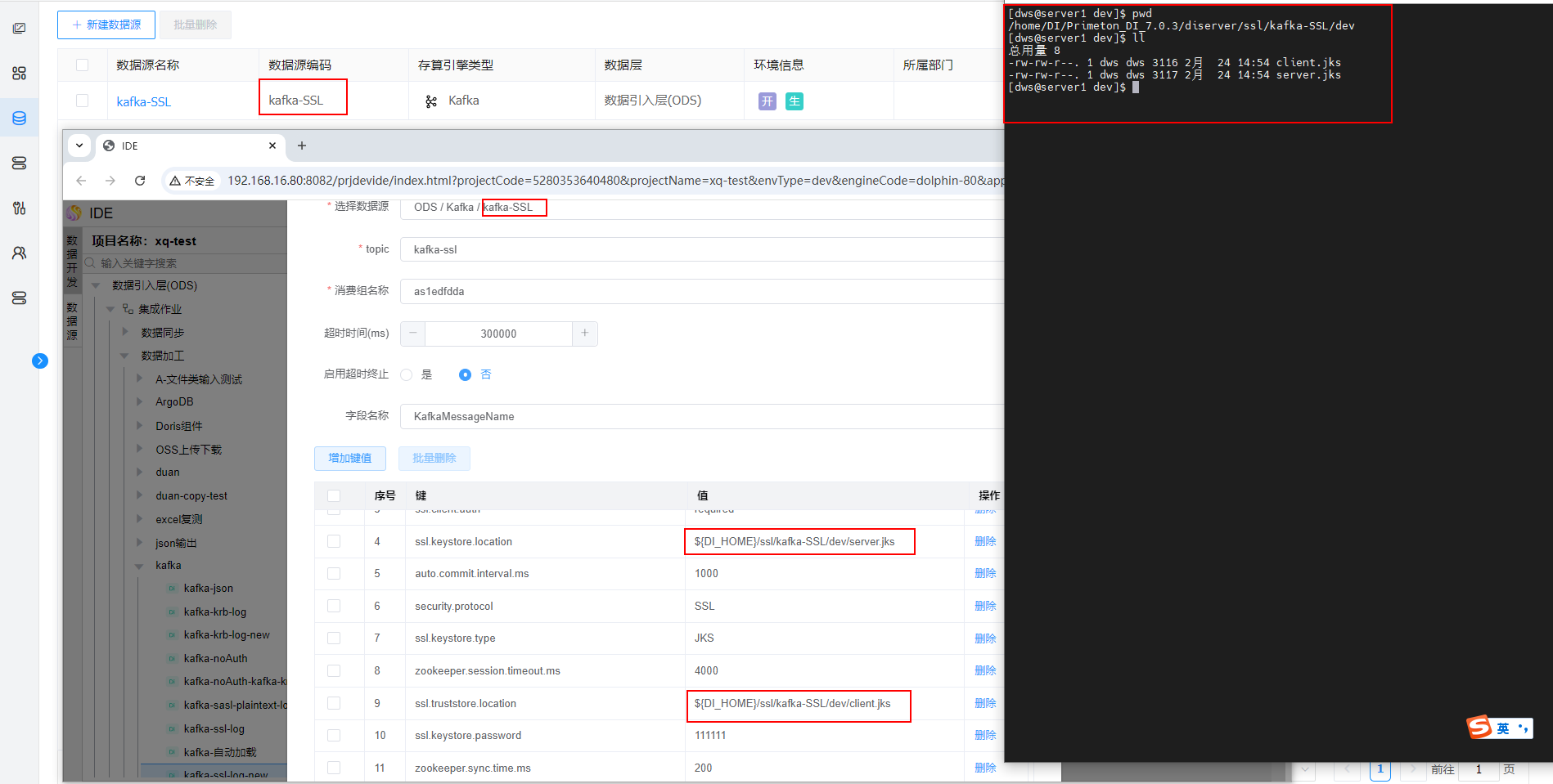 步骤2. DI Server需要在${DI_HOME}/ssl/{datasourceCode}/{envType}/目录下放置kafka-keystore.jks、kafka-truststore.jks认证文件