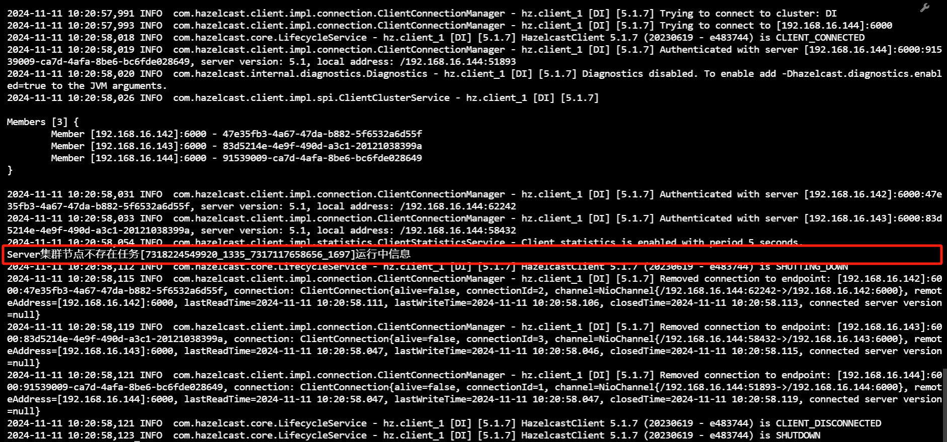 [INFO][LifecycleService:57][Line:57] [192.168.16.80]:6001 [DI] [5.1.7] [192.168.16.80]:6001 is STARTED
