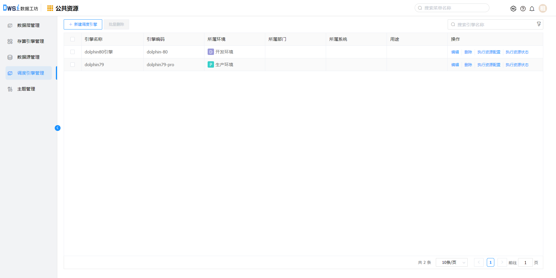 点击【调度引擎管理】菜单,点击新建调度引擎。