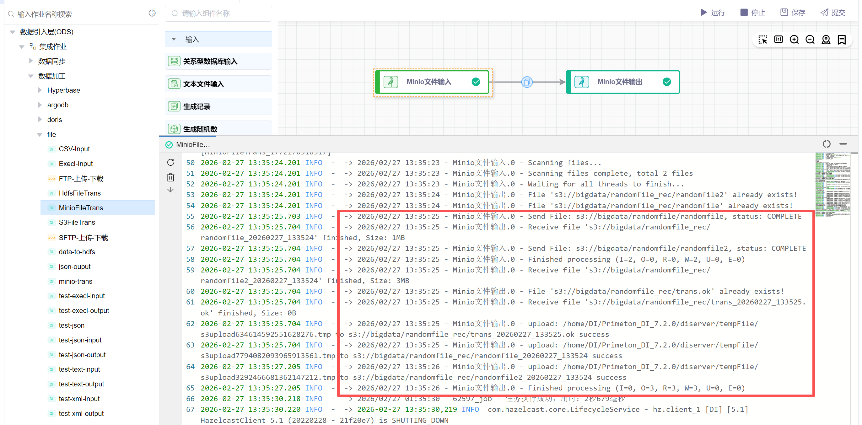 本示例主要介绍 Minio文件输入 和 Minio文件输出的使用方法。
