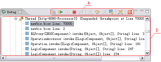 | 编辑器 | 显示正在调试的逻辑流内容和调试数据 | 调试透视图中间位置 |