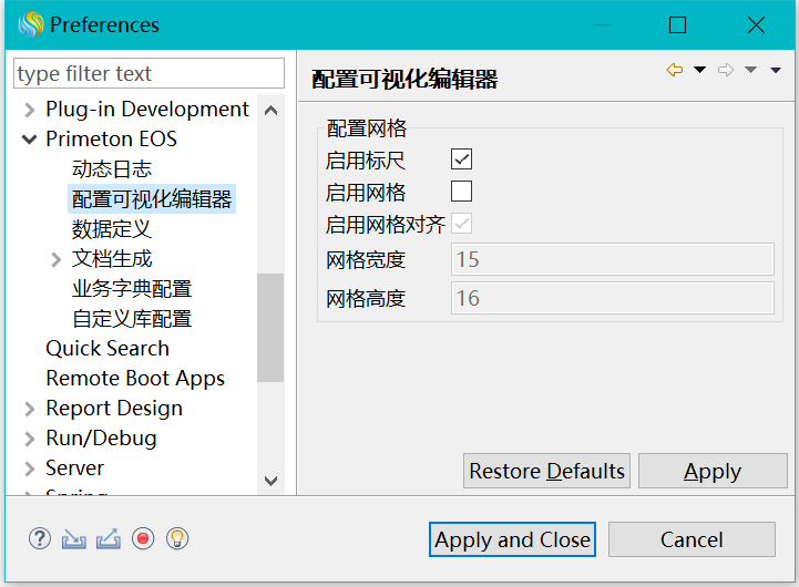 此配置页主要为EOS编辑器提供网格配置。