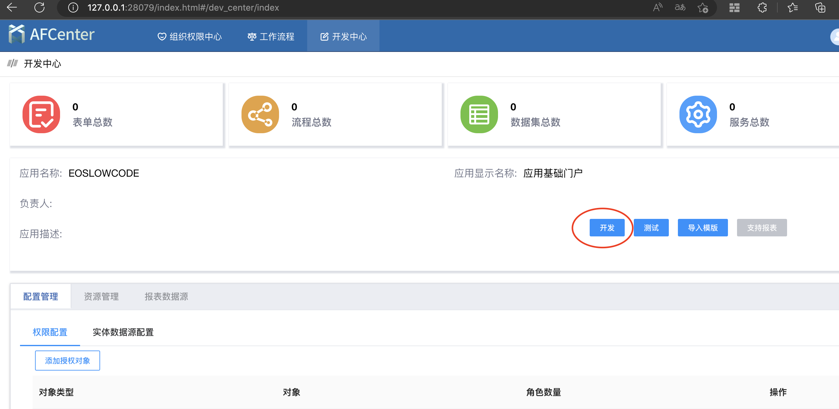 注意: 如果"应用名称” 不是 “EOSLOWCODE",会打不开低开环境,需要登录到AFCenter中修改应用名
