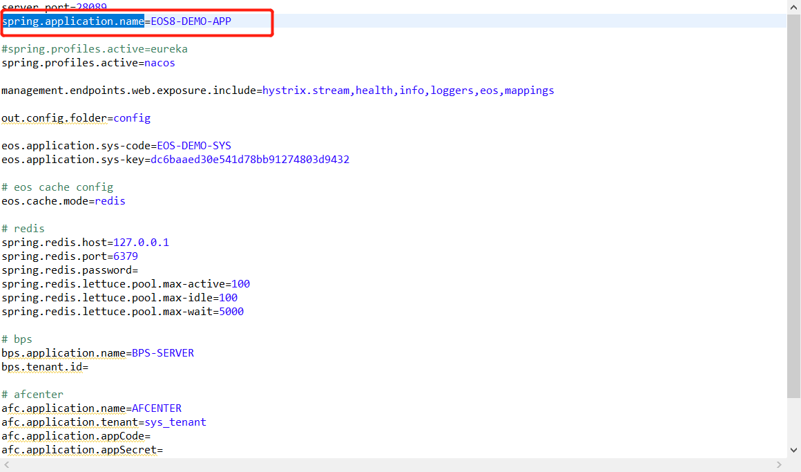 3.修改application.properties、application-nacos.properties、bootstrap.properties文件中nacos与redis配置,要与afc使用同一个nacos与redis服务。