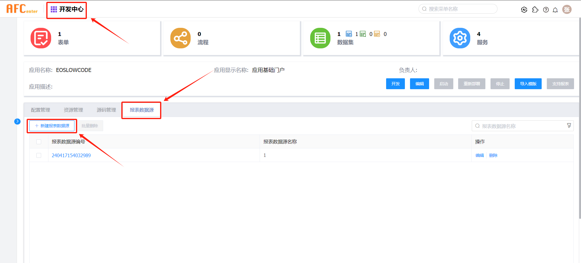 开发中心-报表数据源-新建报表数据源。