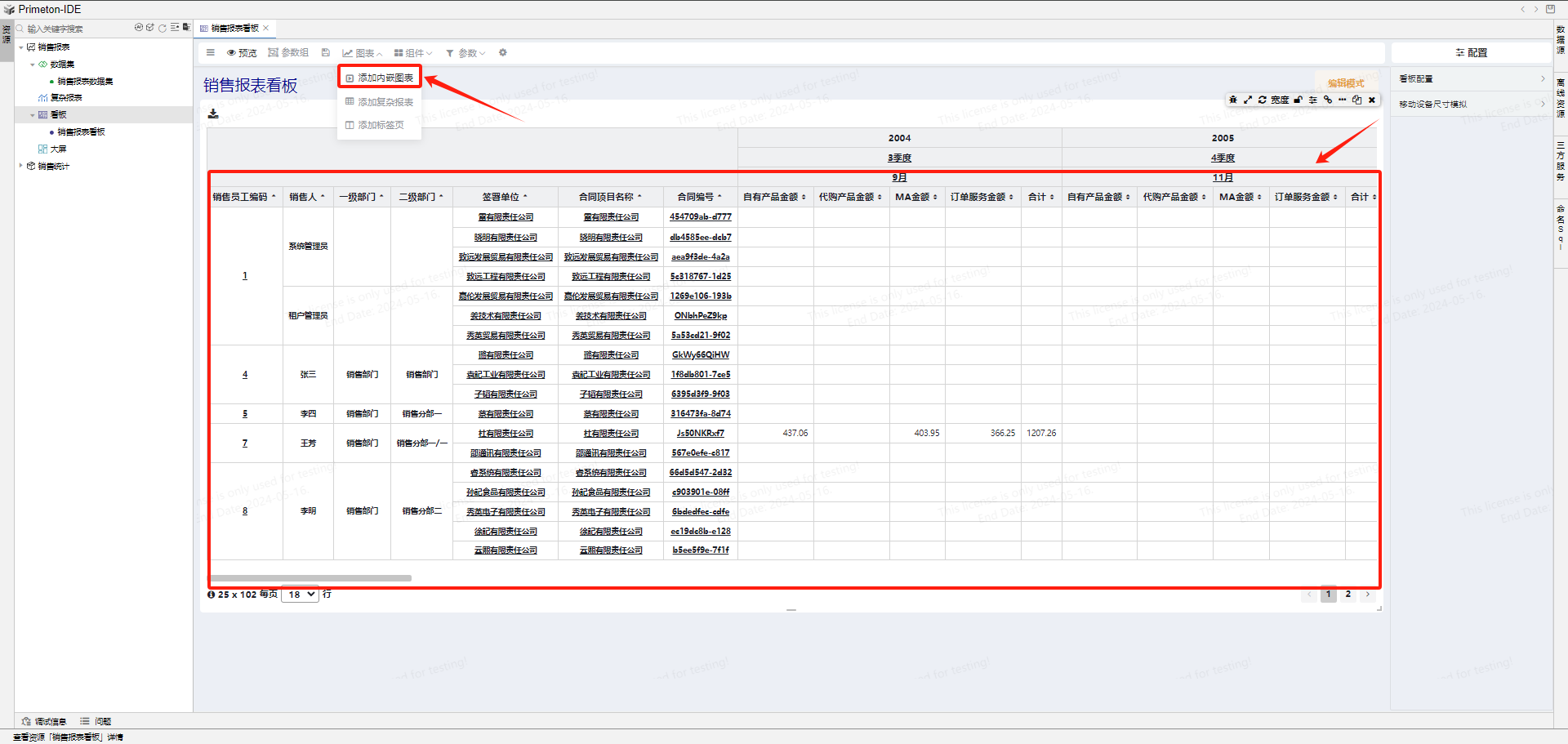 新建看板,添加内嵌图表,设计看板报表。