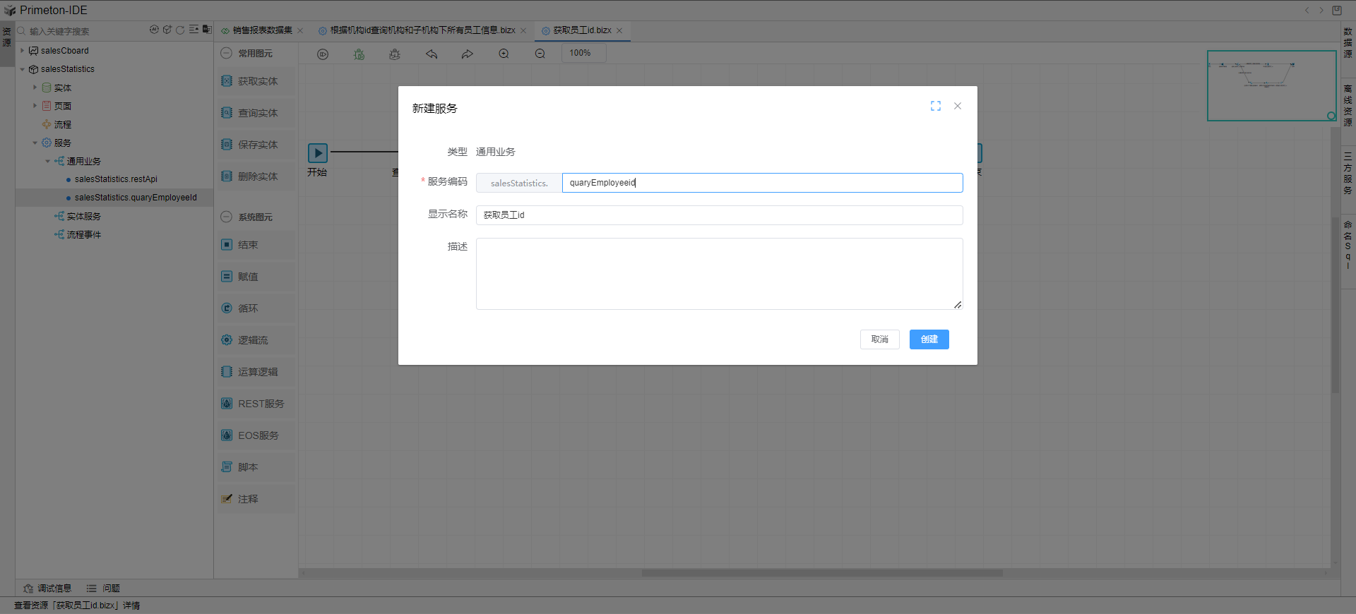 新建构建包,在通用业务下新建获取员工id逻辑流服务。