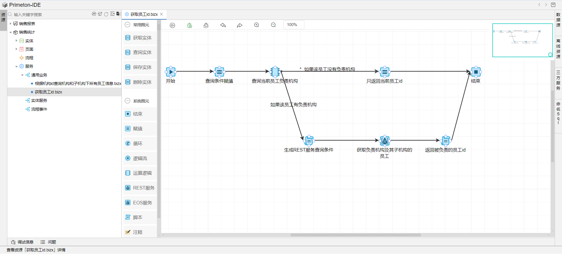 分支一:如果当前登录员工为普通销售,则逻辑流只返回该员工自己的员工id。