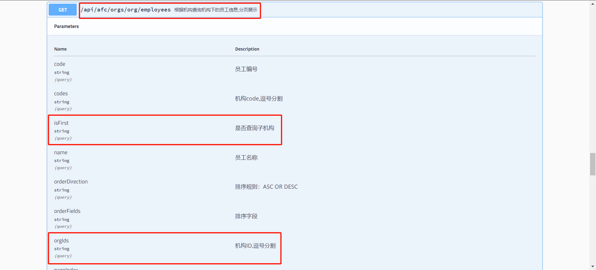 远程URL: http://{ip}:{port}/api/afc/orgs/org/employees