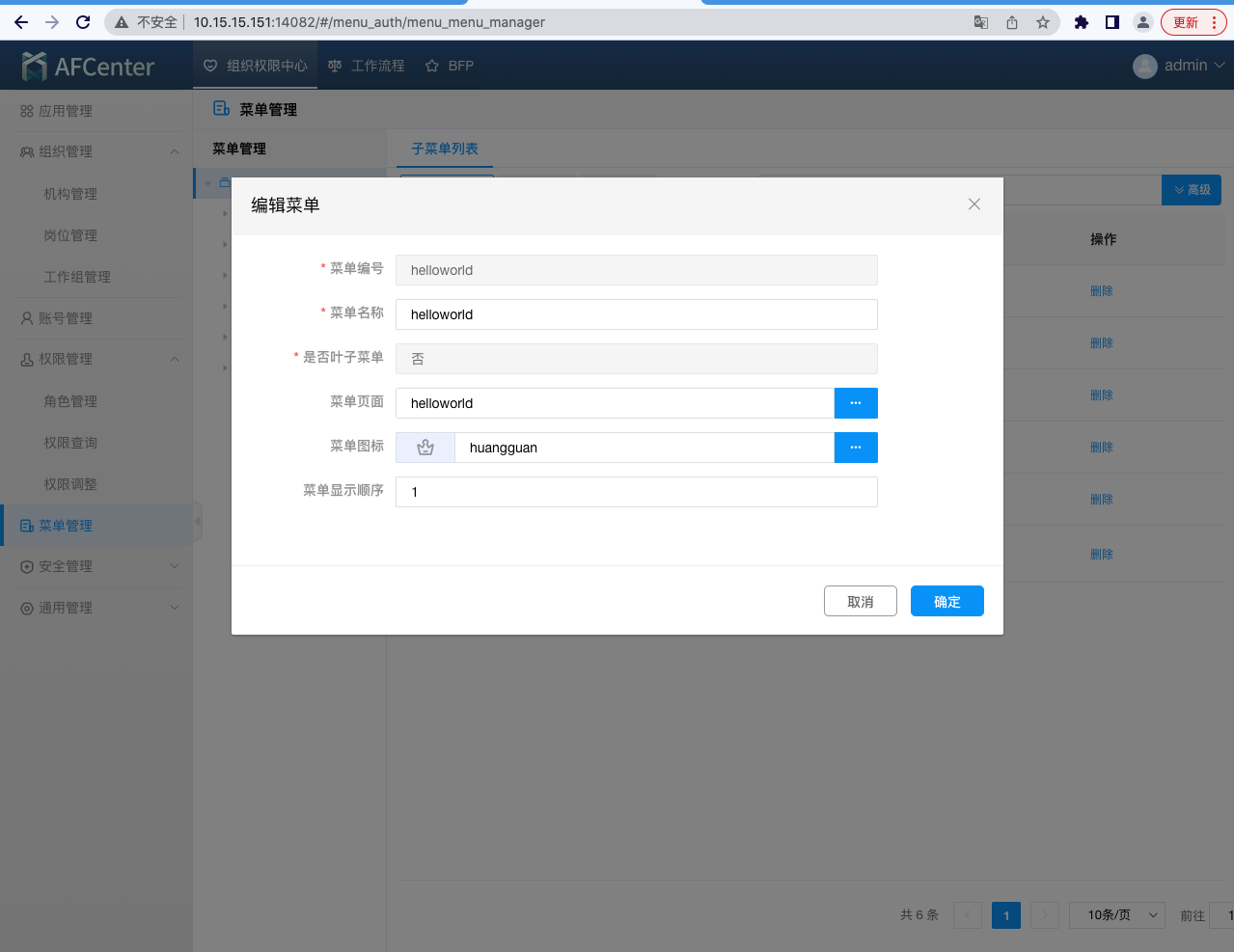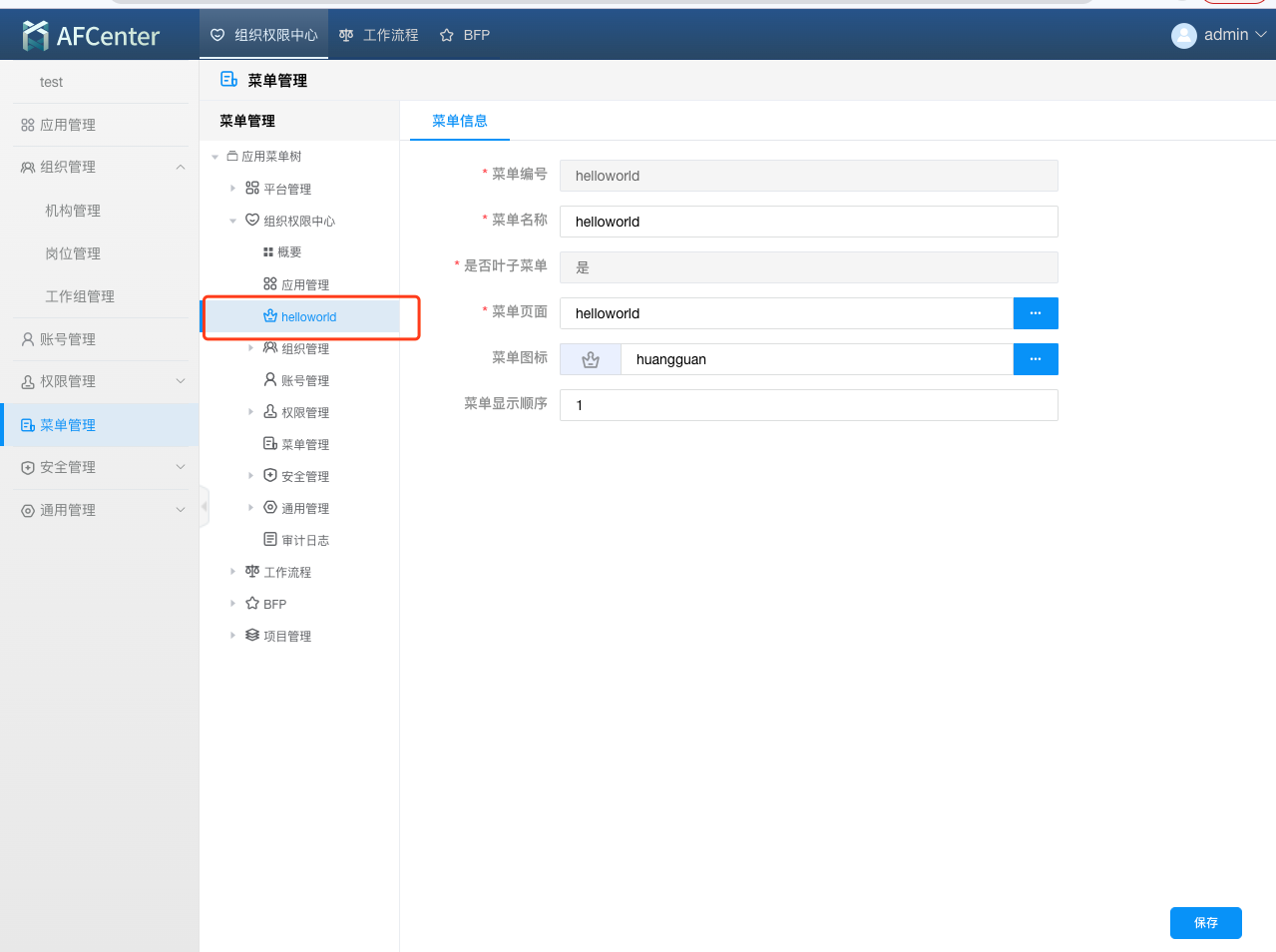 进入菜单管理,创建helloworld菜单。
