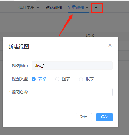 - 在视图下,给视图设置新建参数view_date,并在动作设置处的添加新增按钮添加参数page_date