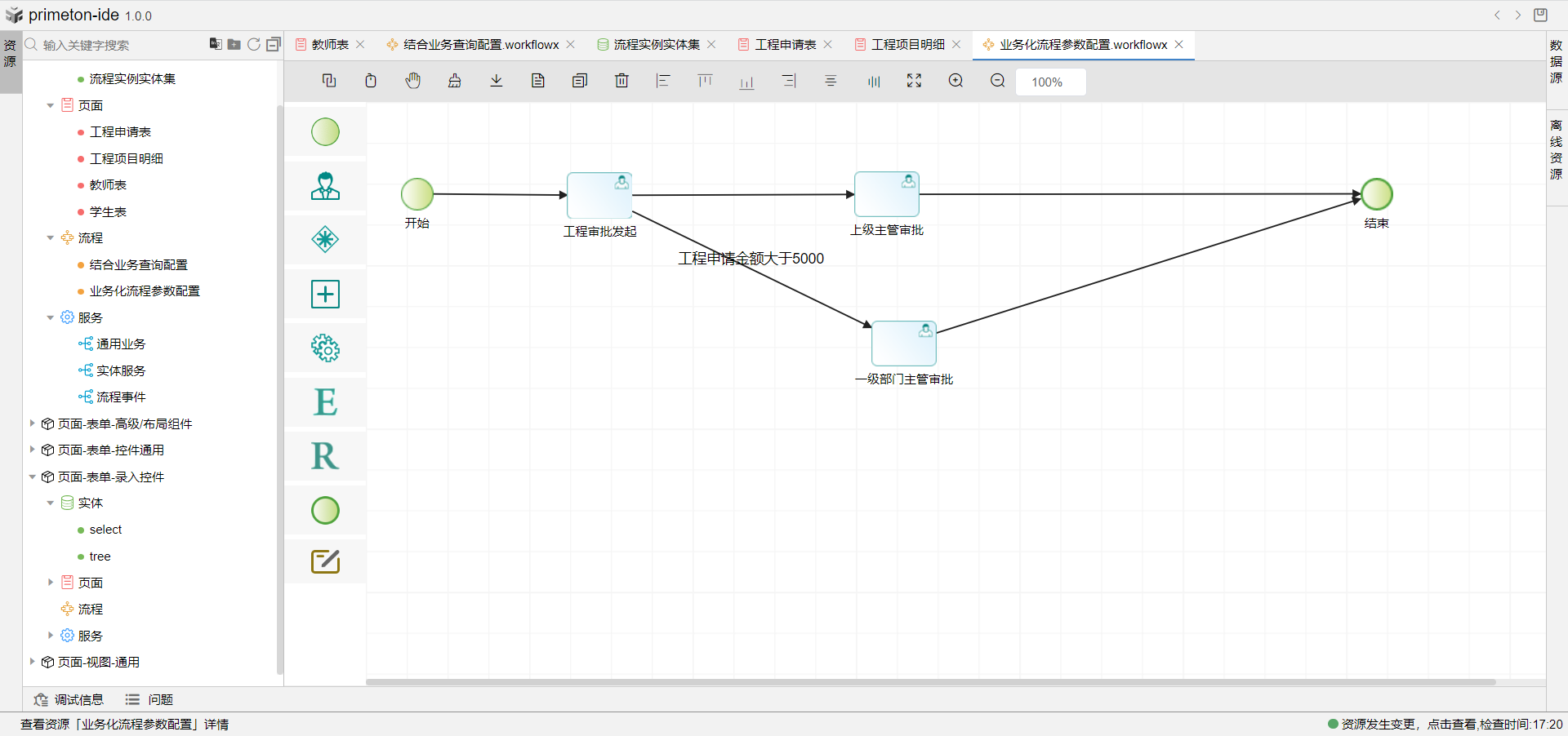 使用自定义参与者规则功能,在工程申请表单填写金额大于5000时交由具体人员张三审批,工程审批金额小于等于5000时交由租户管理员角色审批。