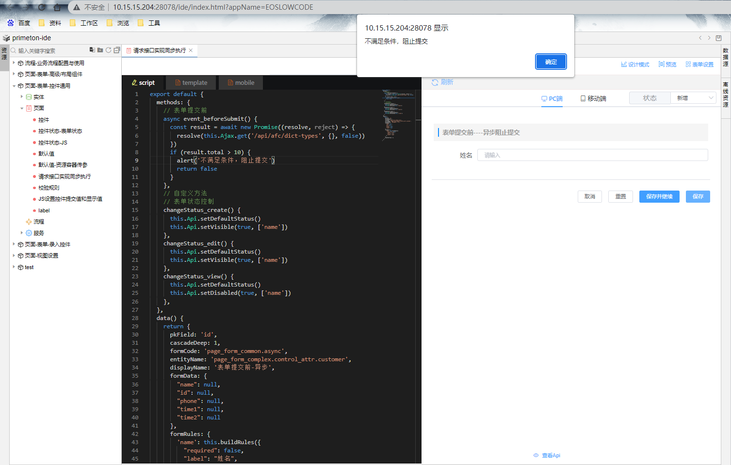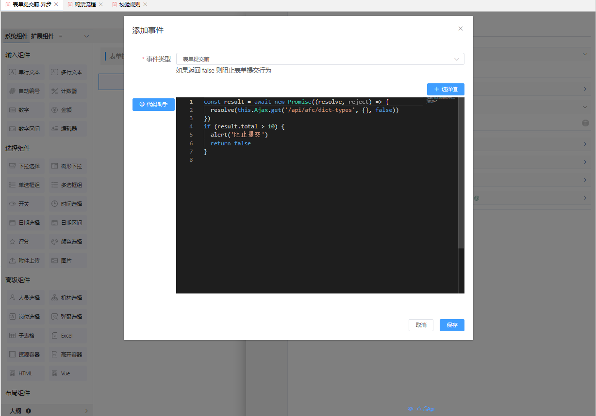 # 表单提交前-调接口阻止提交