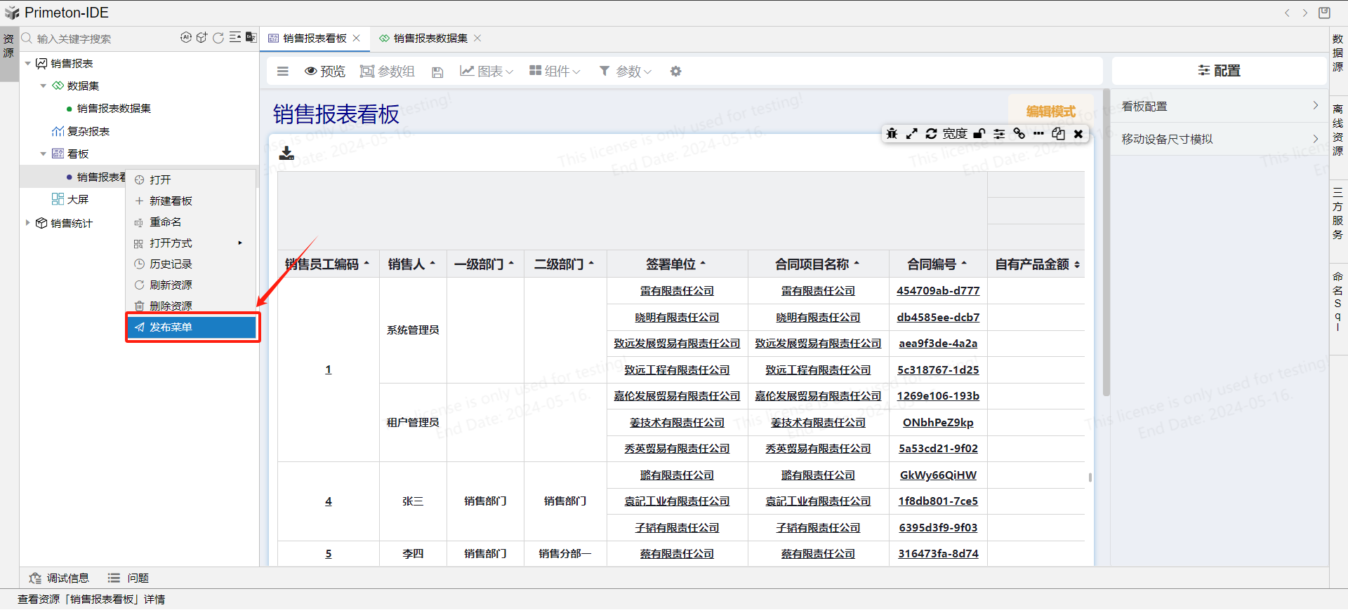 右键看板,发布菜单,使报表看板挂载到AFCenter应用中。