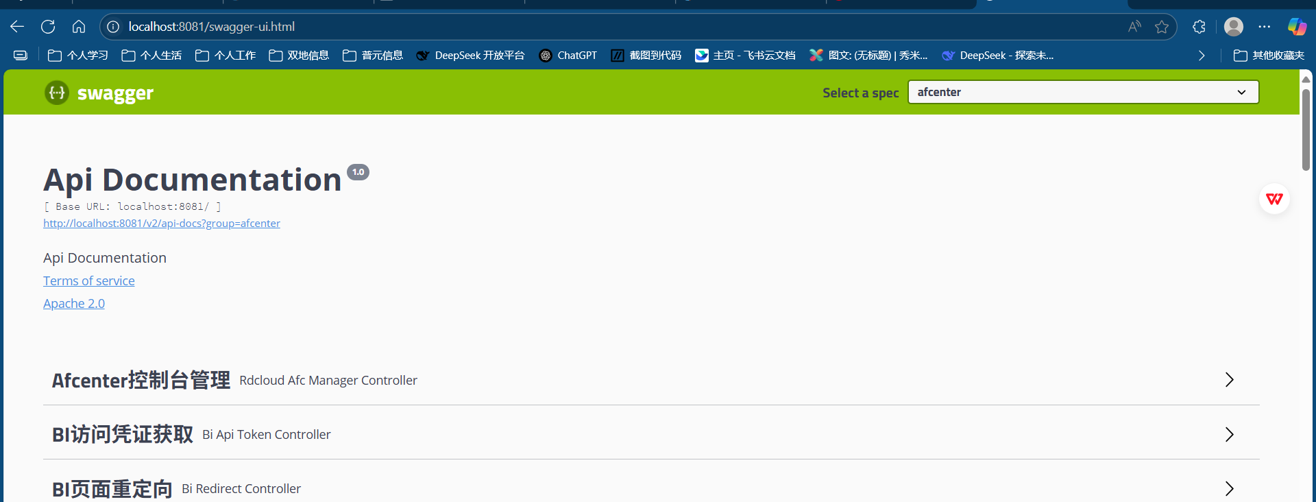 后续可根据业务需求对afcenter源码就行二次开发,开发后需要对接口进行测试时,可部署前端介质通过nginx代理到当前服务后(nginx配置文件可参考发版nginx配置文件*.conf文件),访问前端页面登录后获取请求头中的token,进行postman接口测试即可。