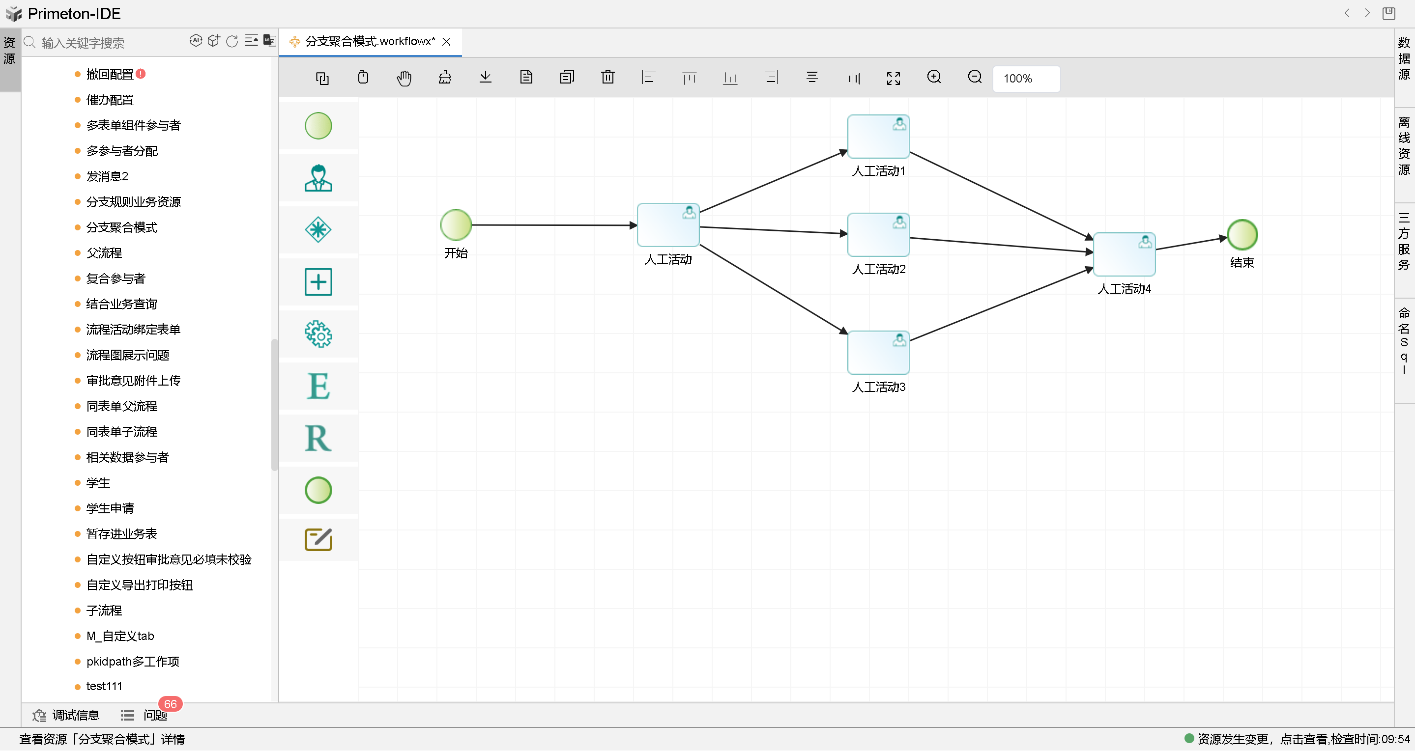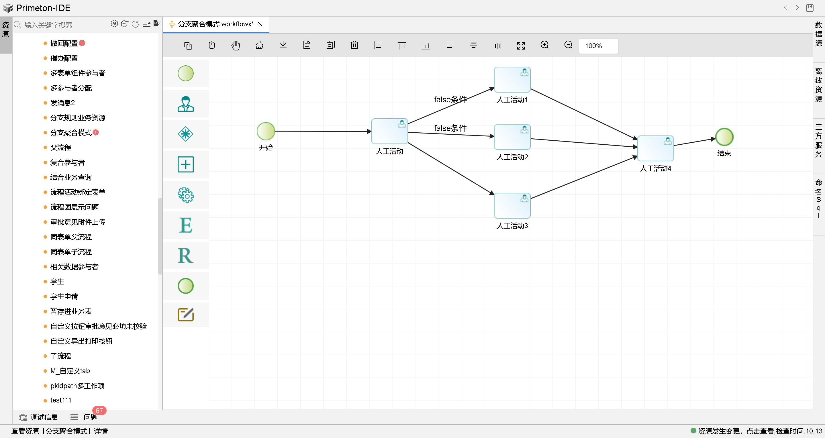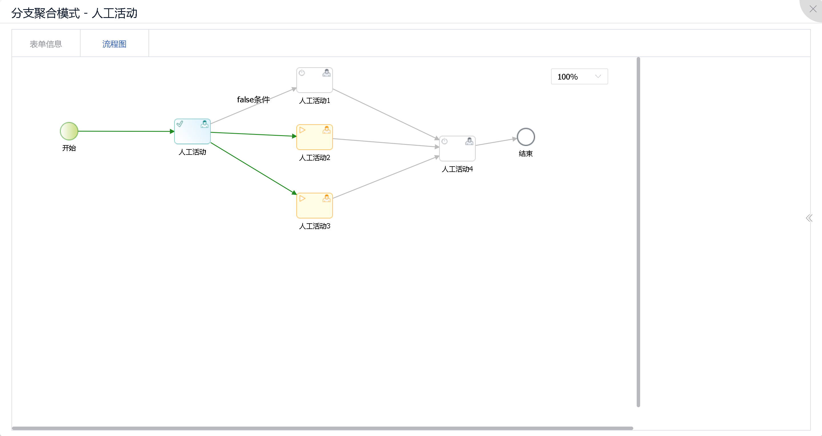 1. 发起流程,人工活动后续连线根据条件符合而被触发