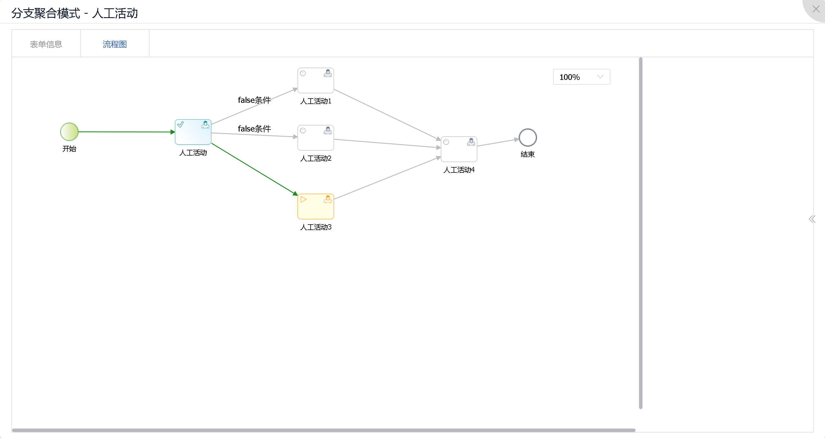 1. 人工活动1和人工活动2连线设置false条件,人工活动3连线默认连线。