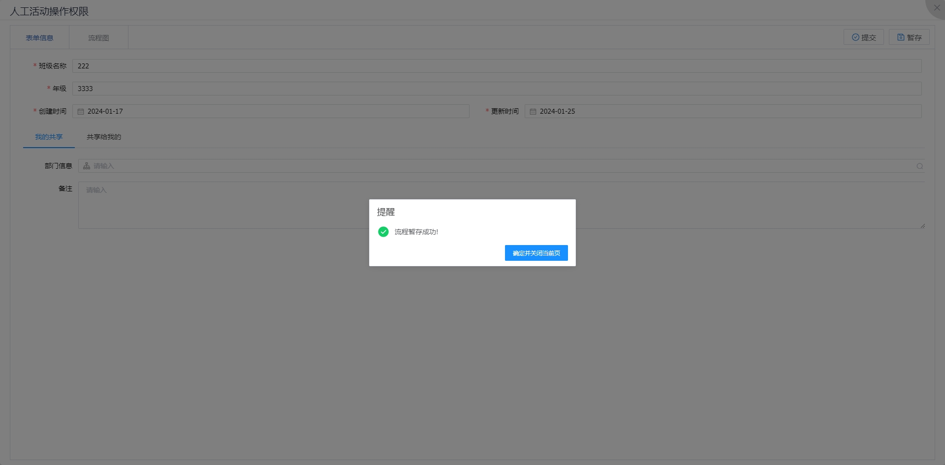 暂存功能就是将当前业务表单数据存储到我的草稿箱中,暂时保存。