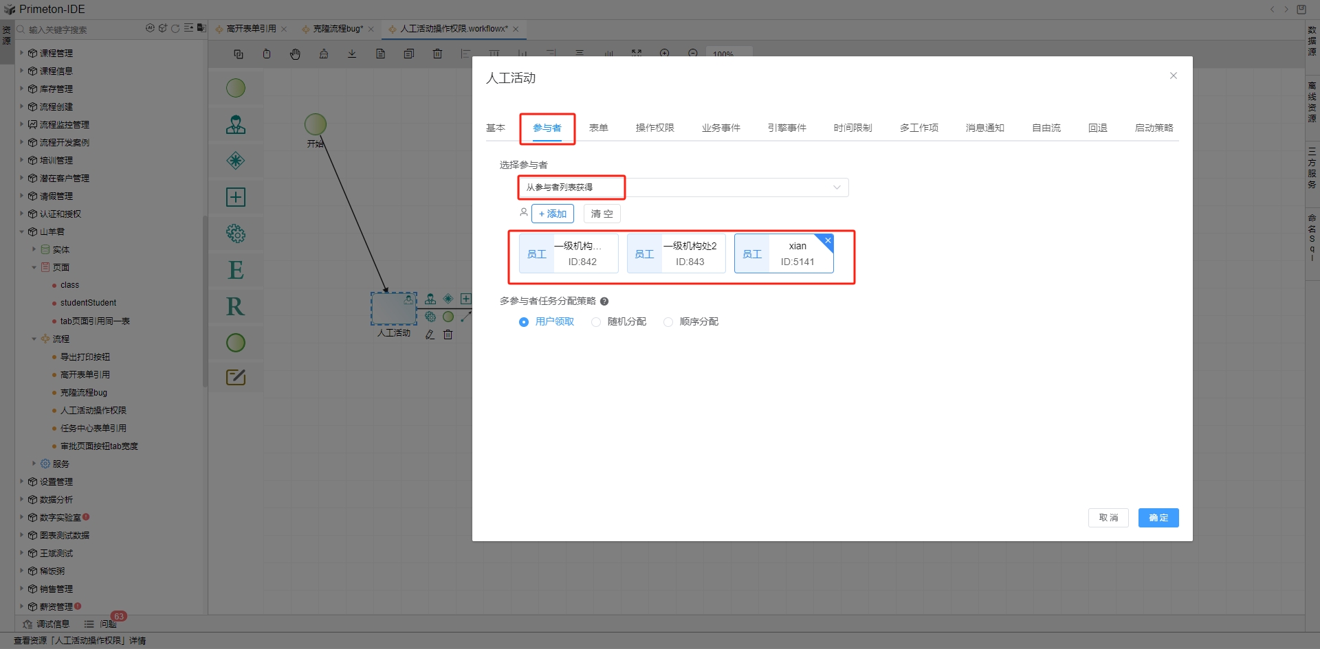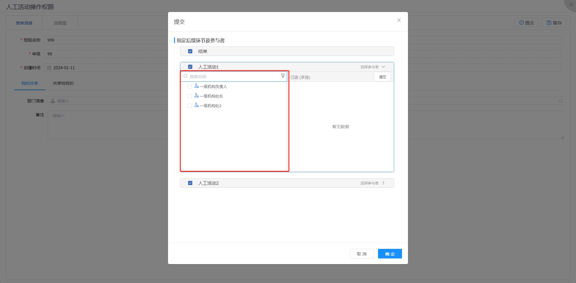 • 指定参与者 - 是在所有人员列表中选择特定的人员进行协办操作