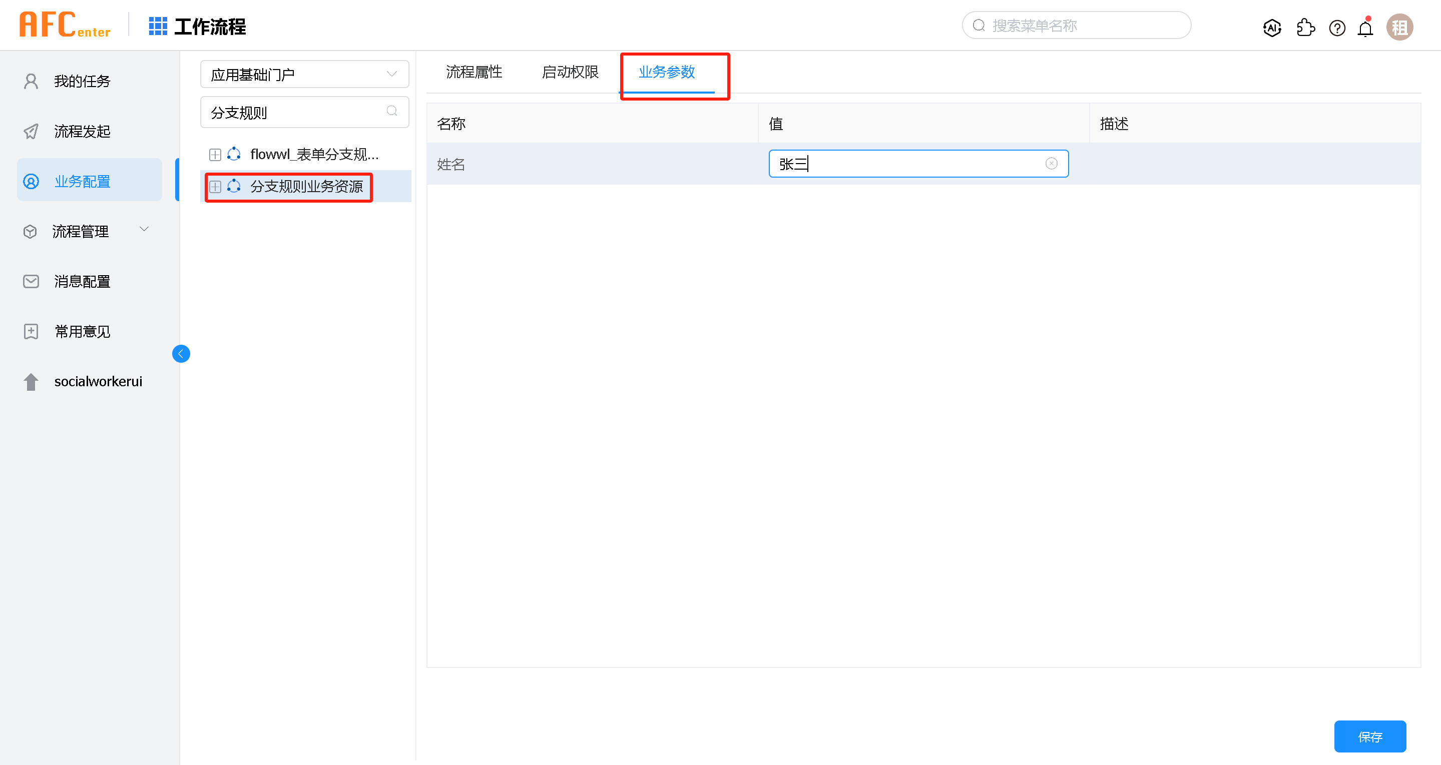 1. 创建业务参数,此时创建的业务参数时需要自定义个默认值。