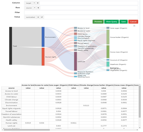 以行值和列值为节点,单元格为行到列的连接进行画图,交叉表可以视为一个连接矩阵