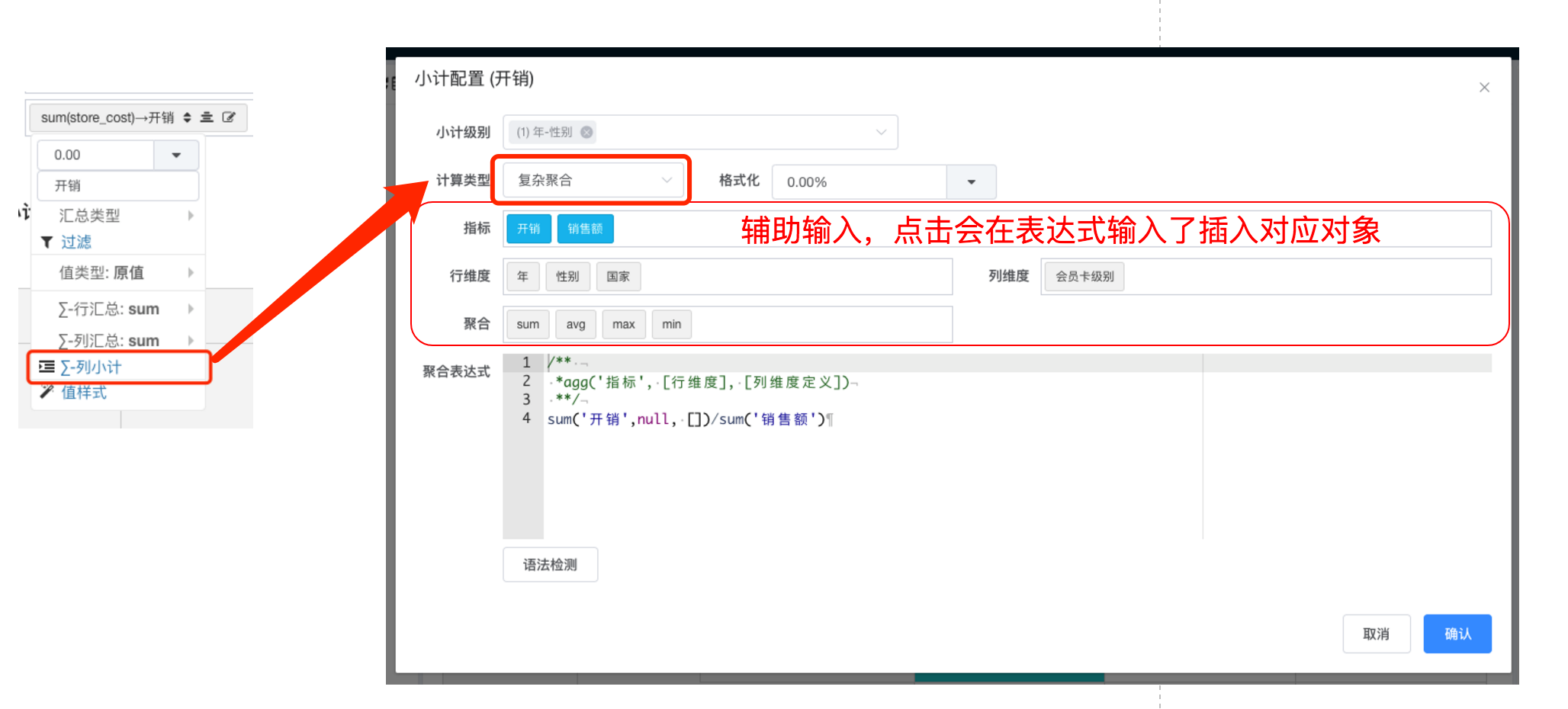 - 通过汇总计算值类型配置,轻松配置汇总占比、同环比之类的值类型变化快速计算