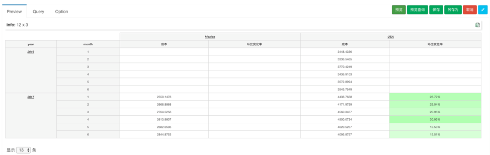 环比, 同比统计属于高级统计操作, 交互稍微复杂些
