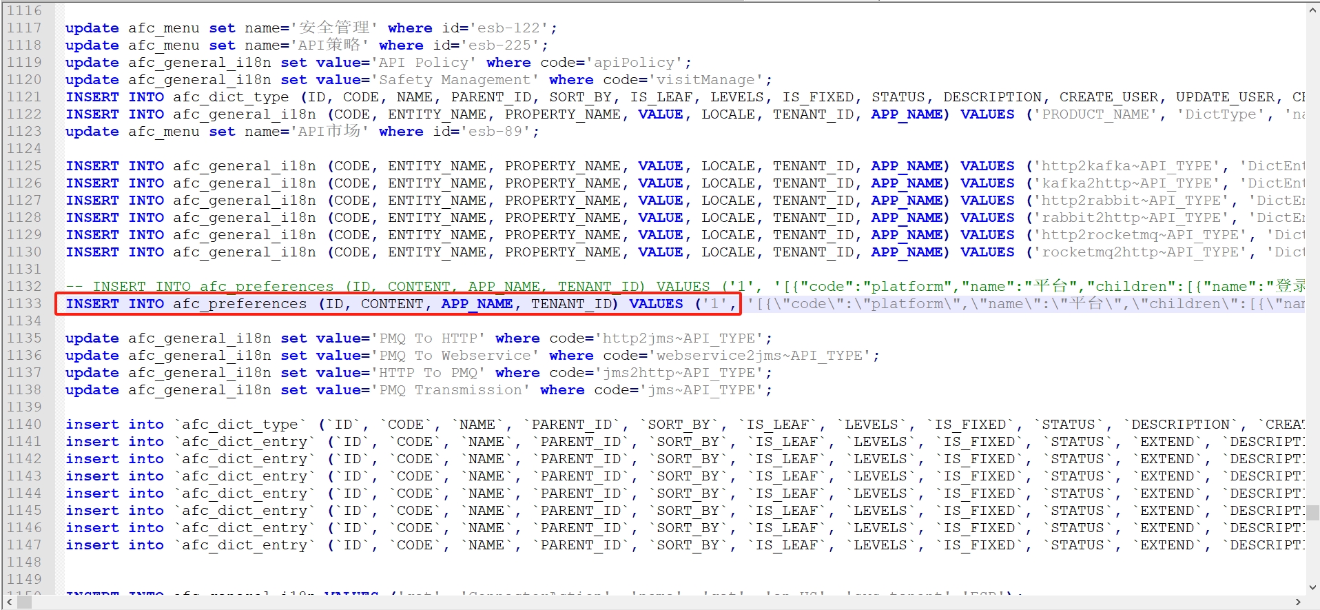 在AFCenter的数据库执行1-esb-afc-data.sql脚本时,如果出现报错AFC_PREFERENCES表的主键冲突,有以下处理方式: