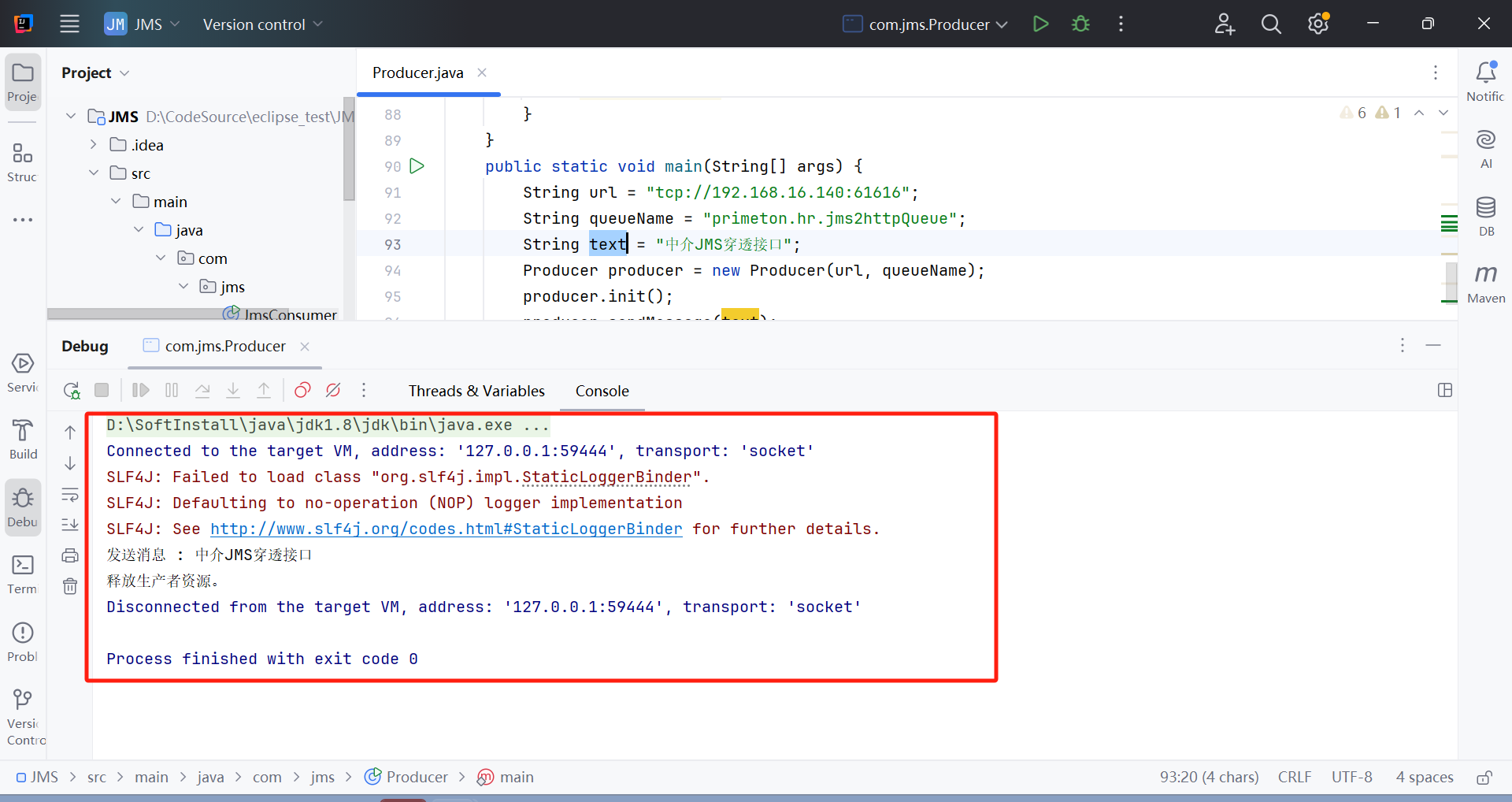 请下载 JMS.zip java工程,调用中介JMS转HTTP接口。下载后使用开发工具打开(此例子中使用idea开发工具)。