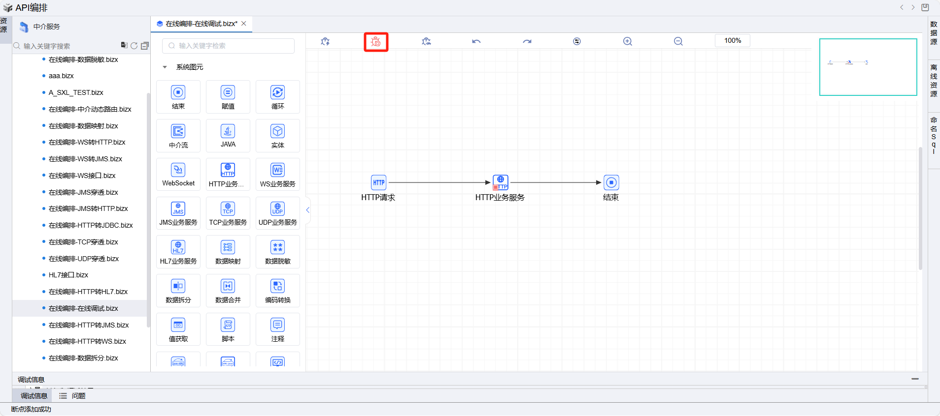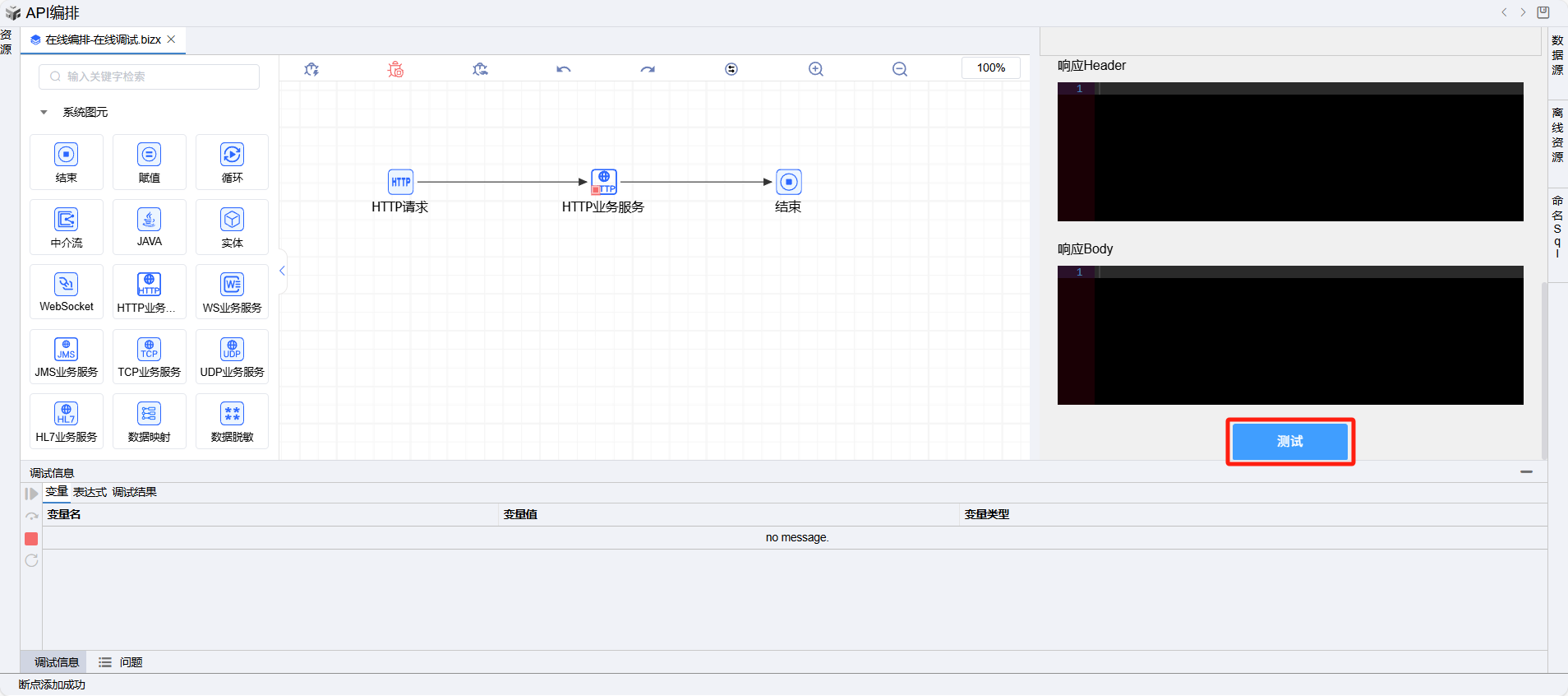 在 HTTP业务服务 图元上点击鼠标右键,点击“设置断点”。