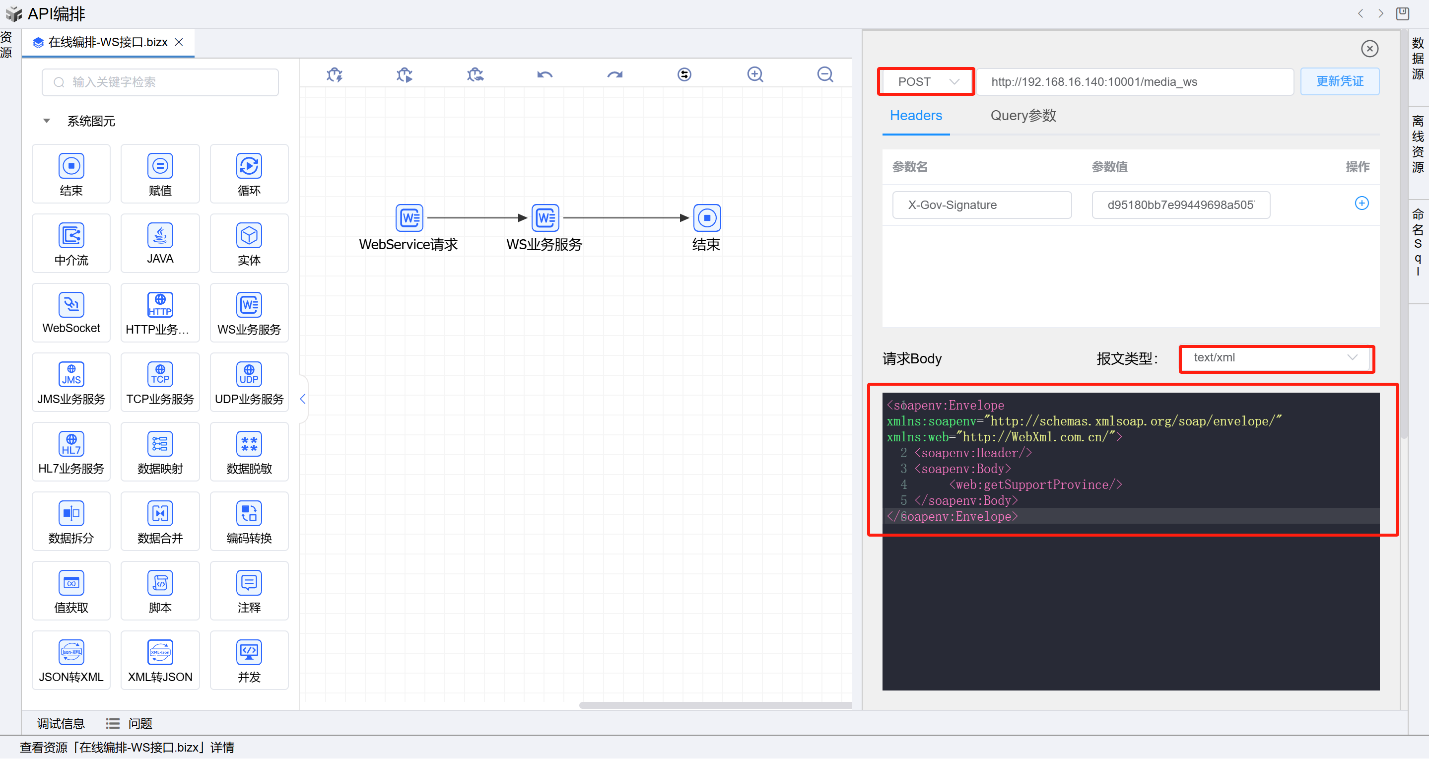 打开测试界面,填写请求内容body体填写如下xml内容: