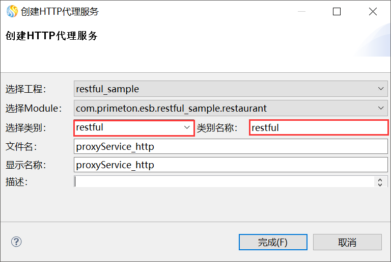 在打开的“创建HTTP代理服务”对话框中,输入类别信息,如下图所示。
