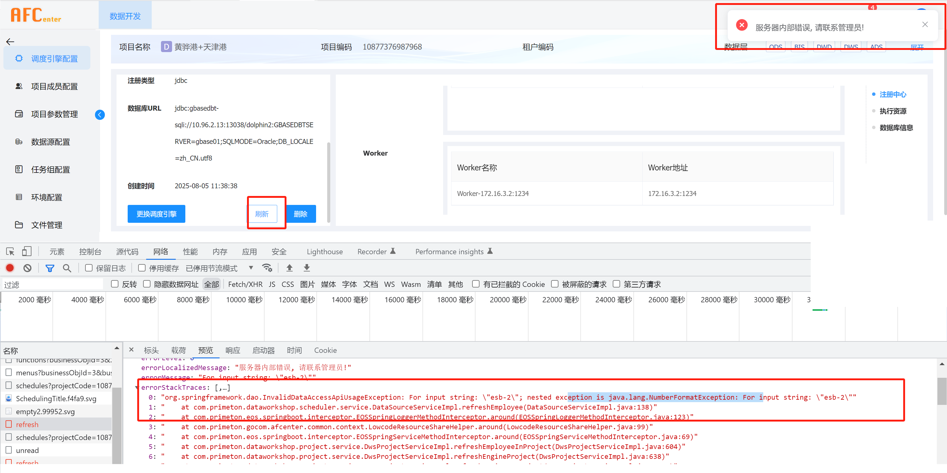 分别启动AFCenter、iPaaS和DWS服务。查看AFCenter、iPaaS和DWS的启动日志,检查启动日志是否有报错。