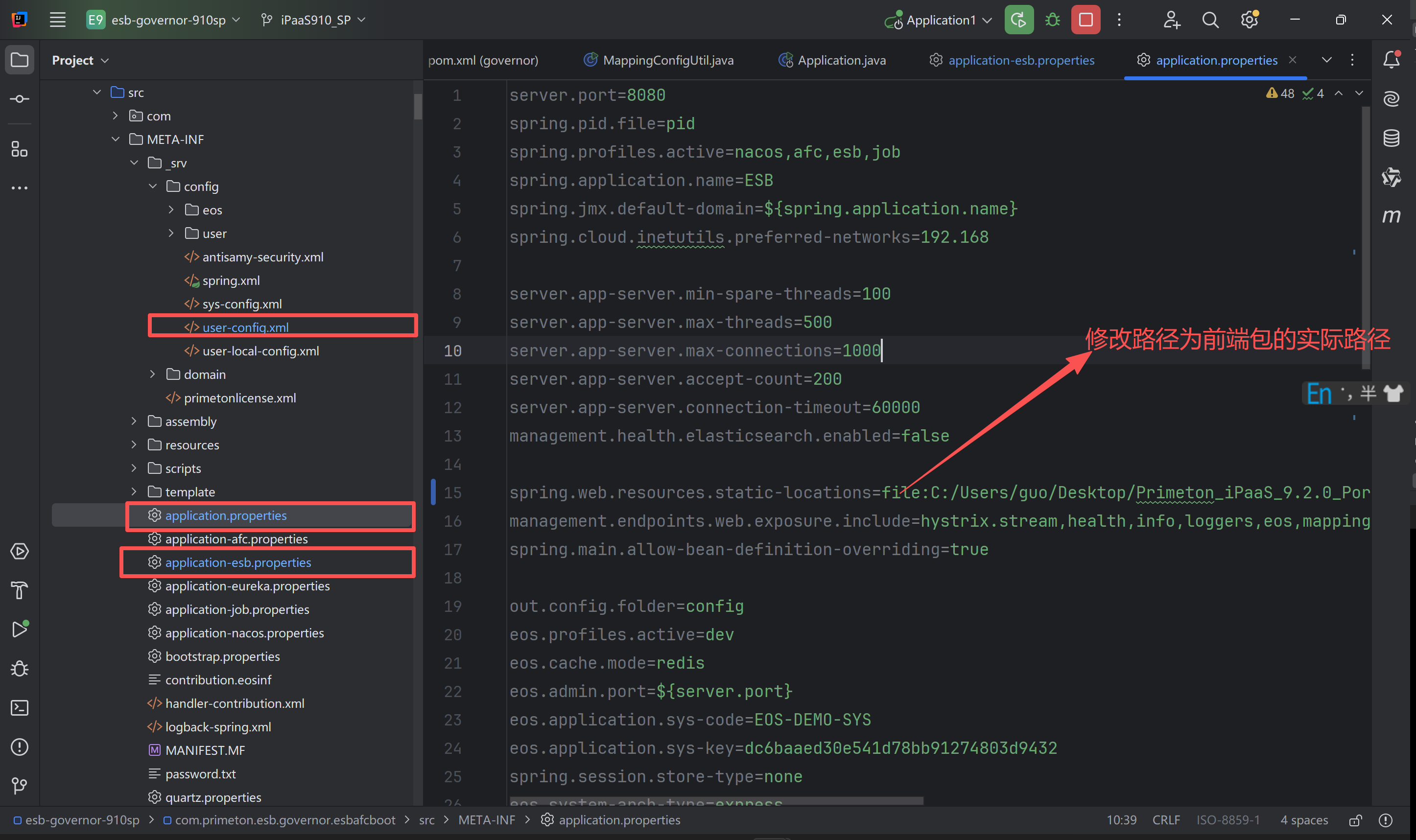 1. 打开application-esb.properties, 修改elasticsearch相关配置:
