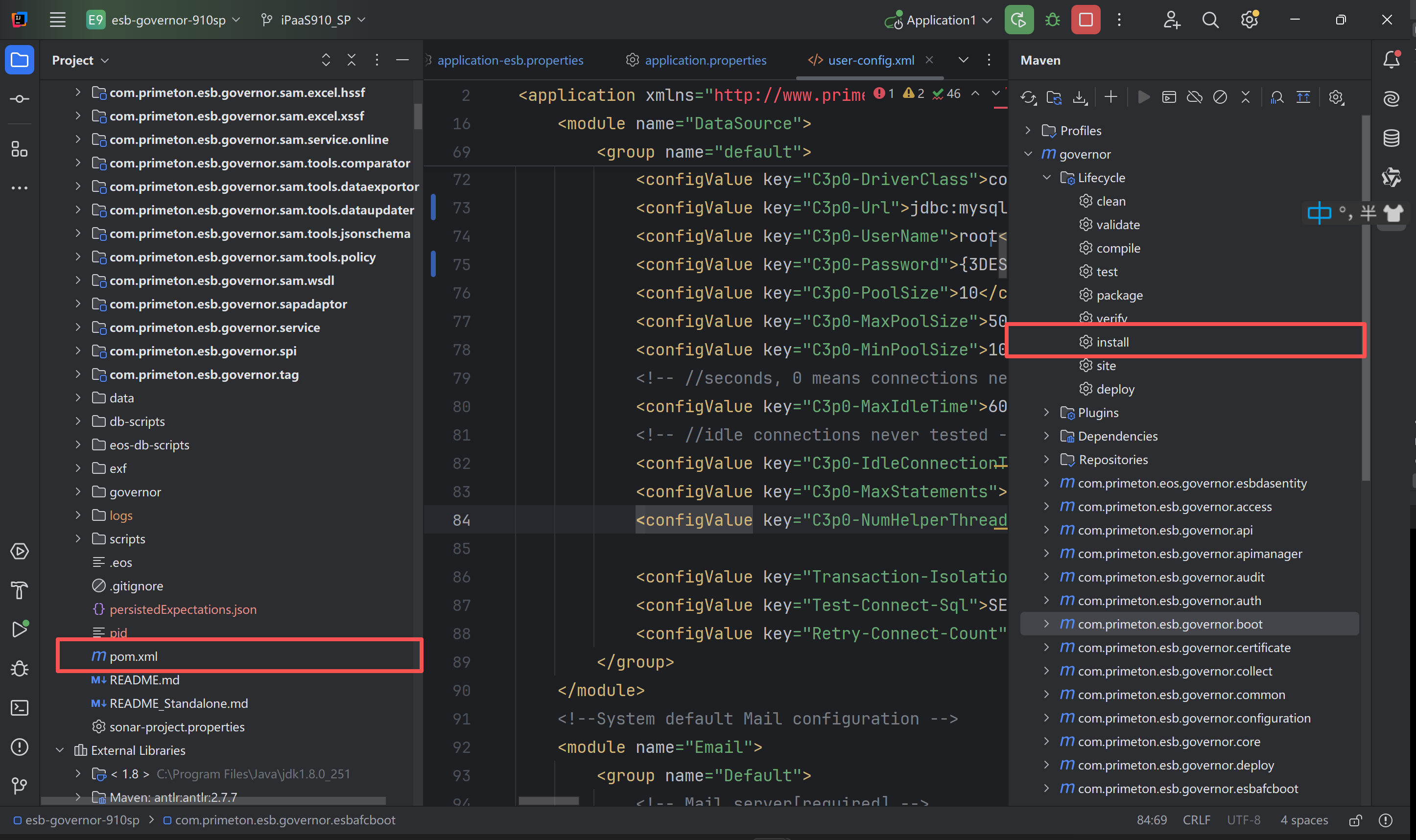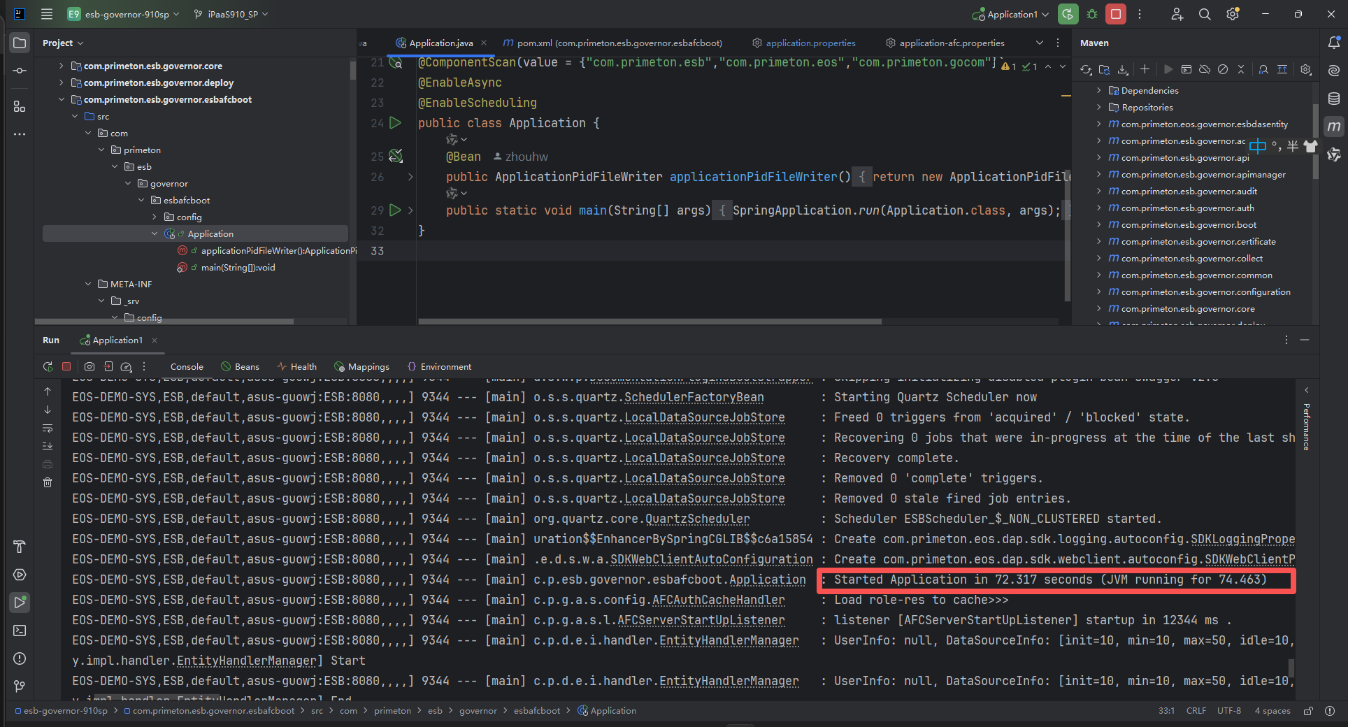 运行com.primeton.esb.governor.esbafcboot 模块下Maven clean、compile或install,更新target,确保修改的配置和license生效。
