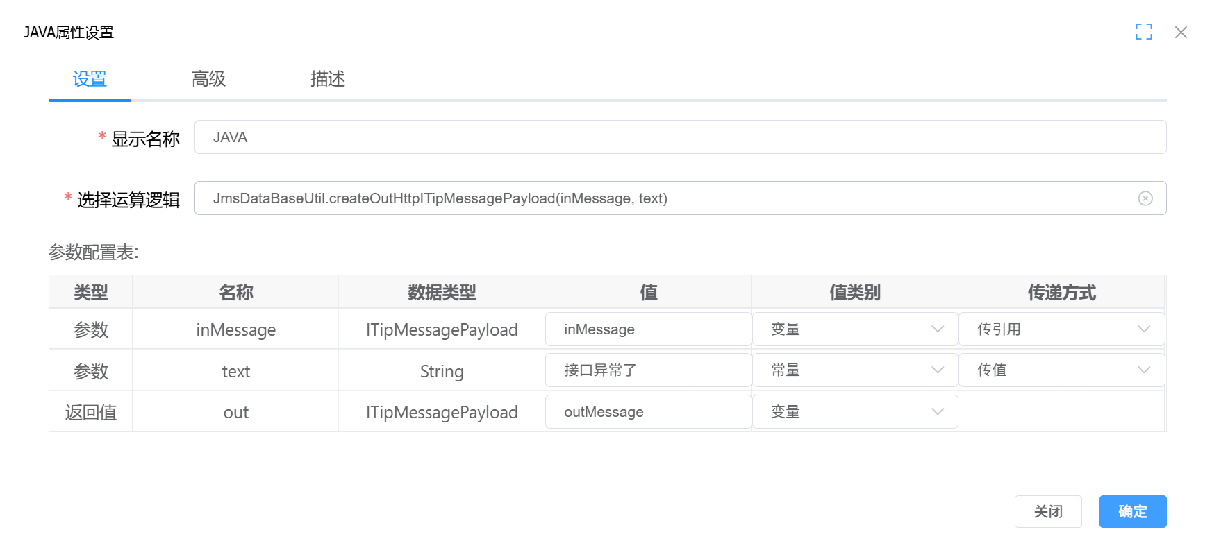 2. 在 Java 图元 中构建响应报文,并赋值给 context.outMessage,如下图所示: