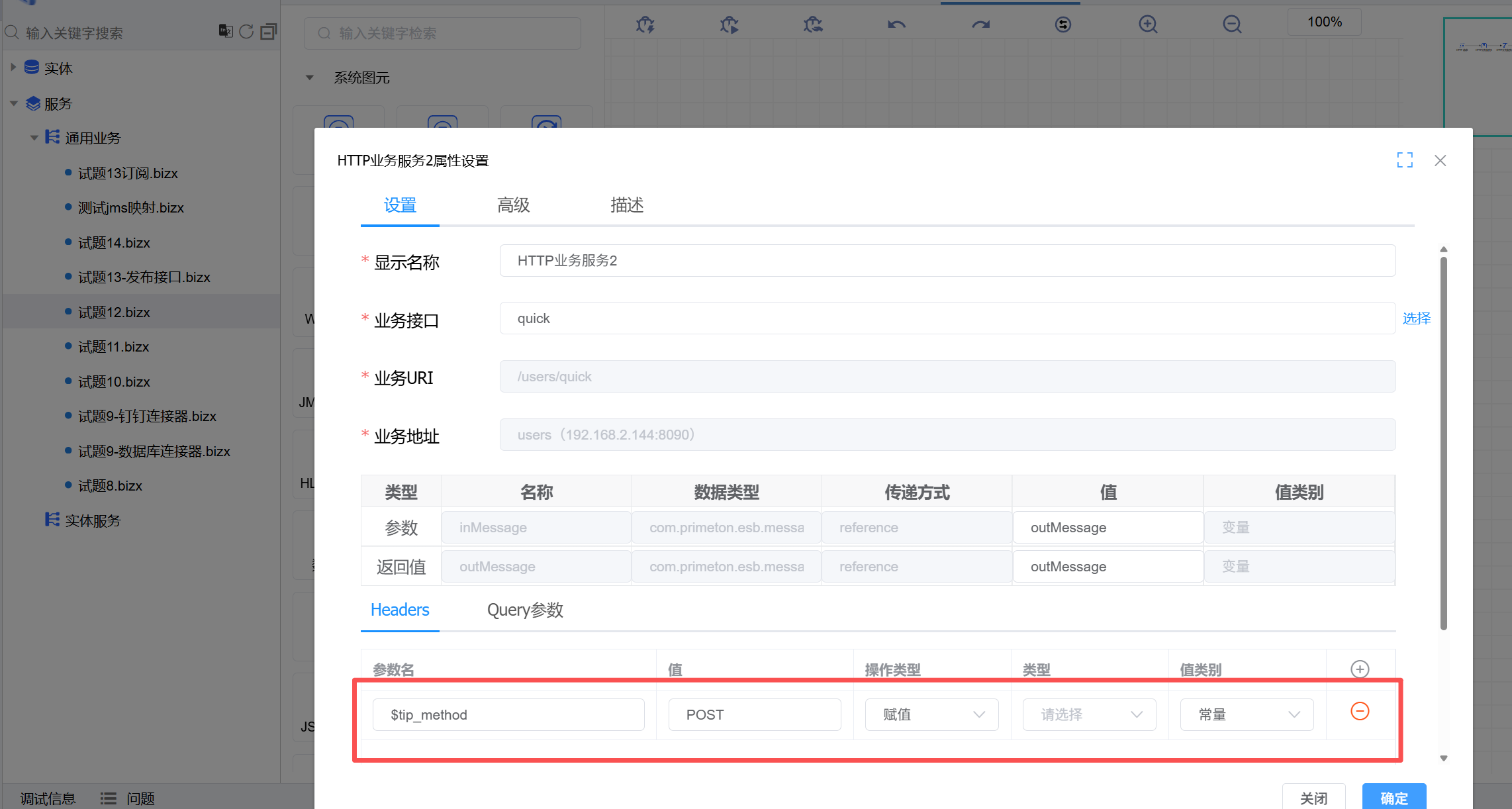 • 方案一:简单的请求头变动,直接在第二个业务图元的header中配置。