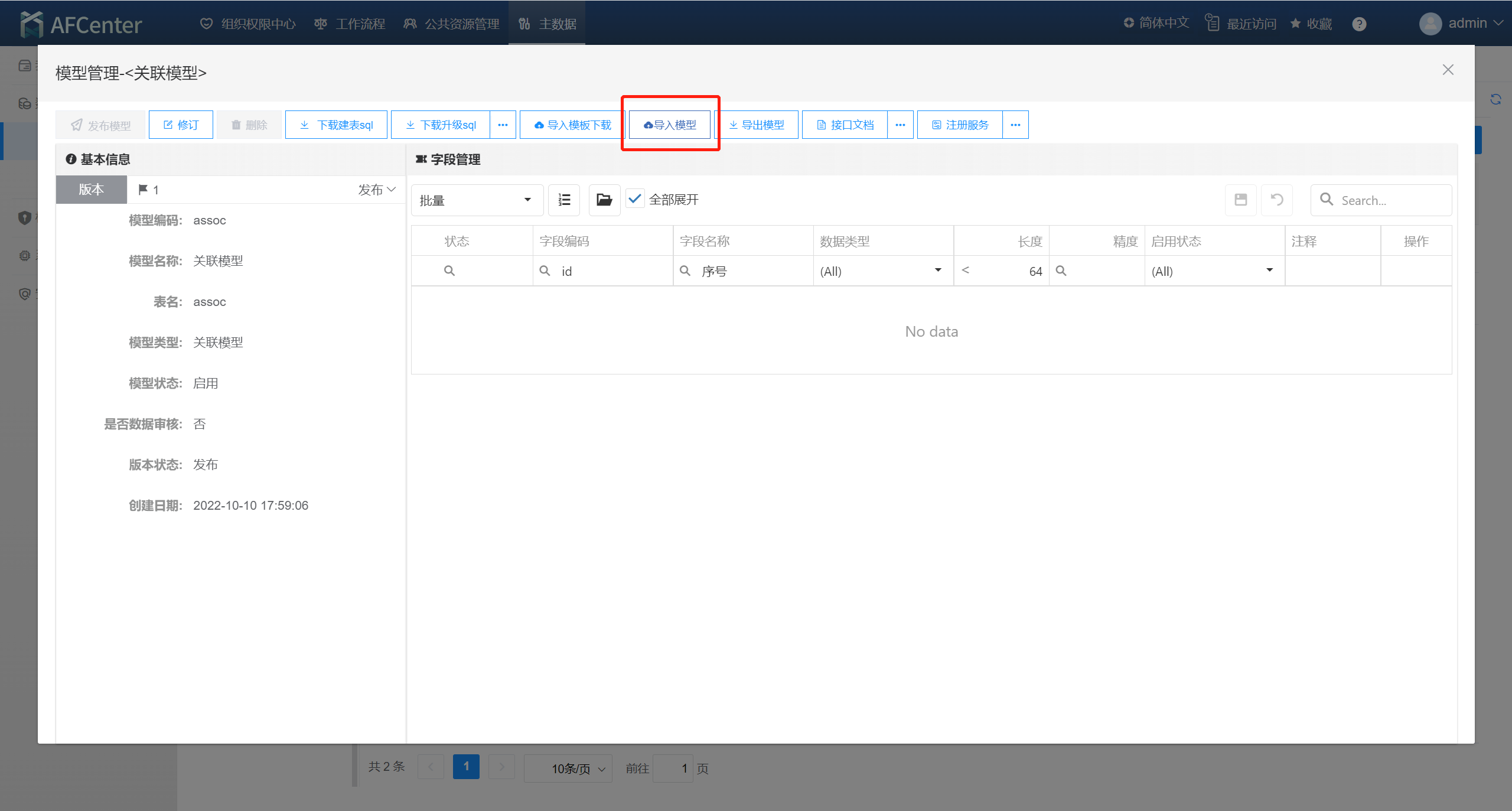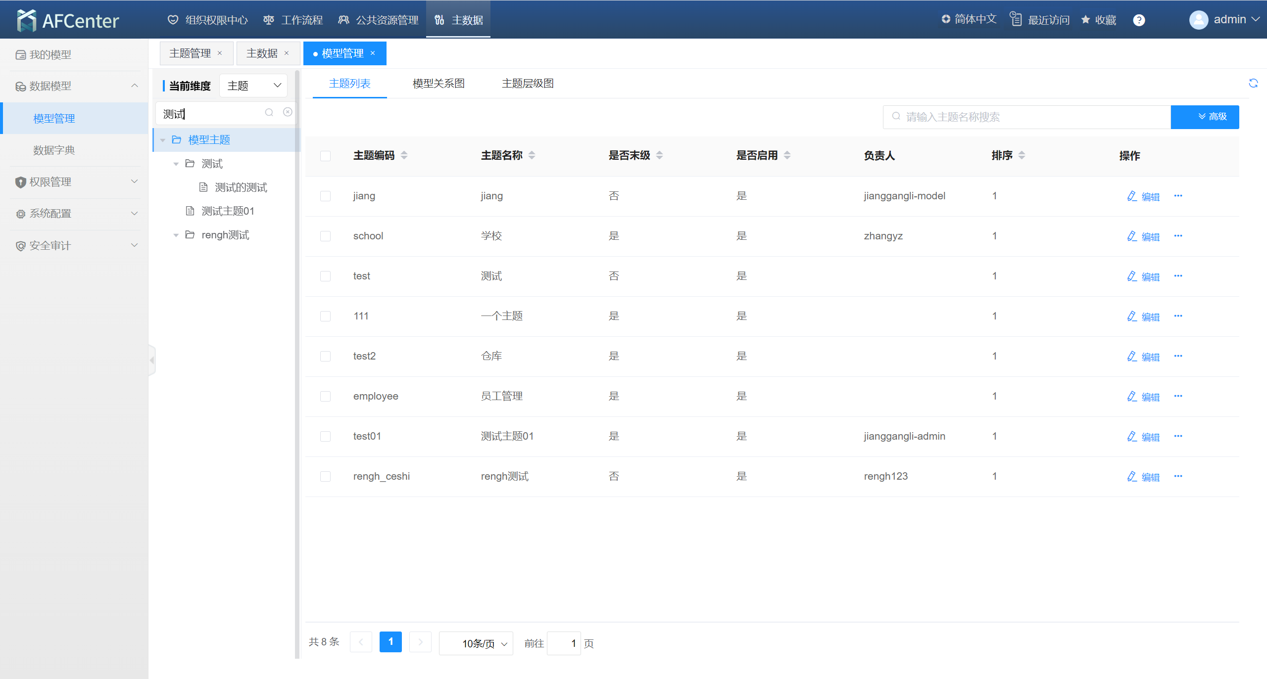 点击“数据模型→模型管理”菜单,进入【模型管理】页面,如图: